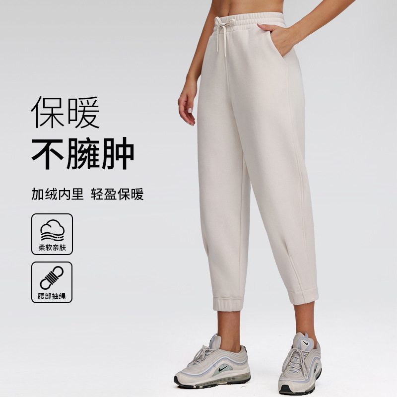 秋と冬の薄いベルベットの屋外厚みのあるレギンスクロップドパンツ多用途ルーズカジュアルパンツワイドレッグスリム暖かいヨガパンツ女性用