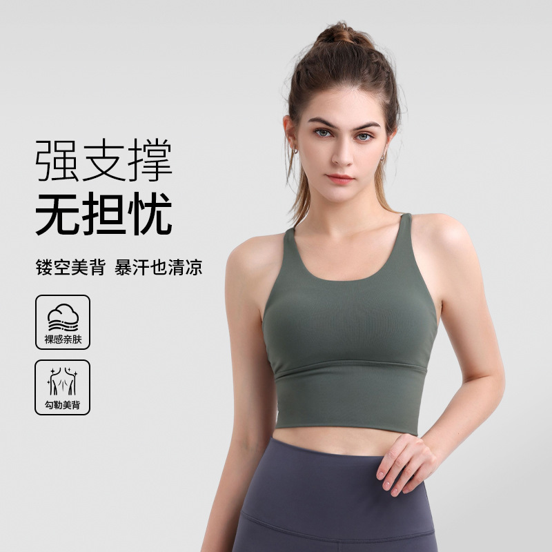 細い肩紐が背中を美しく見せるスポーツブラ、耐震ベスト、フィットネスブラ、ヨガウェア、ノンワイヤーデザイン