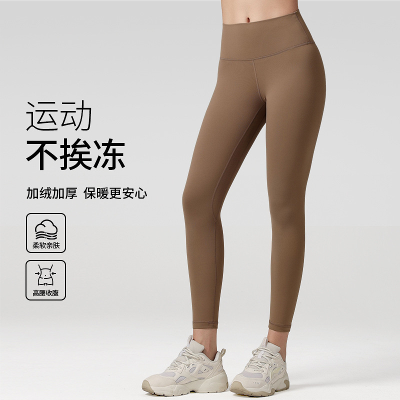 秋冬ベルベットヨガパンツ、厚くて暖かいフィットネスパンツ、ヨガウェア、女性用お腹引き締めヒップアップ桃尻スポーツタイツ