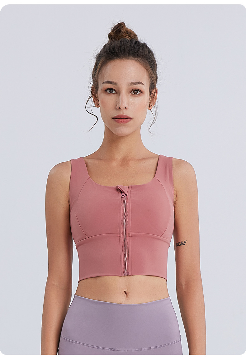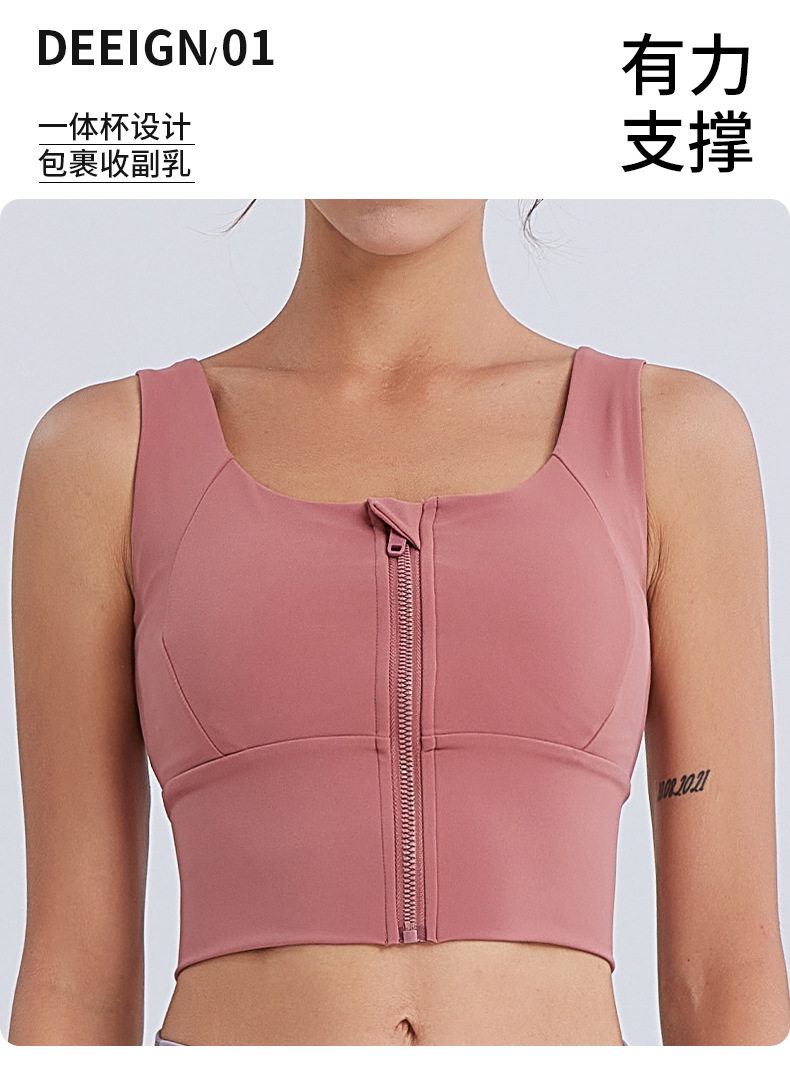 新しいもちもち感覚の半固定カップスポーツブラジッパープッシュアップランニングフィットネスブラ女性通気性ヨガベスト