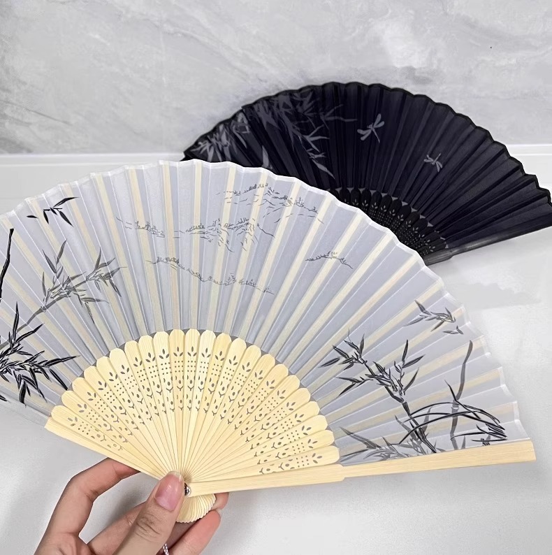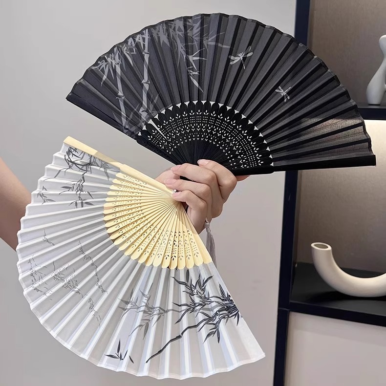 新しい中国風の水墨絹扇子、チャイナドレス付きの夏の古代扇子、ポータブル手回し竹扇子、中国風の漢服