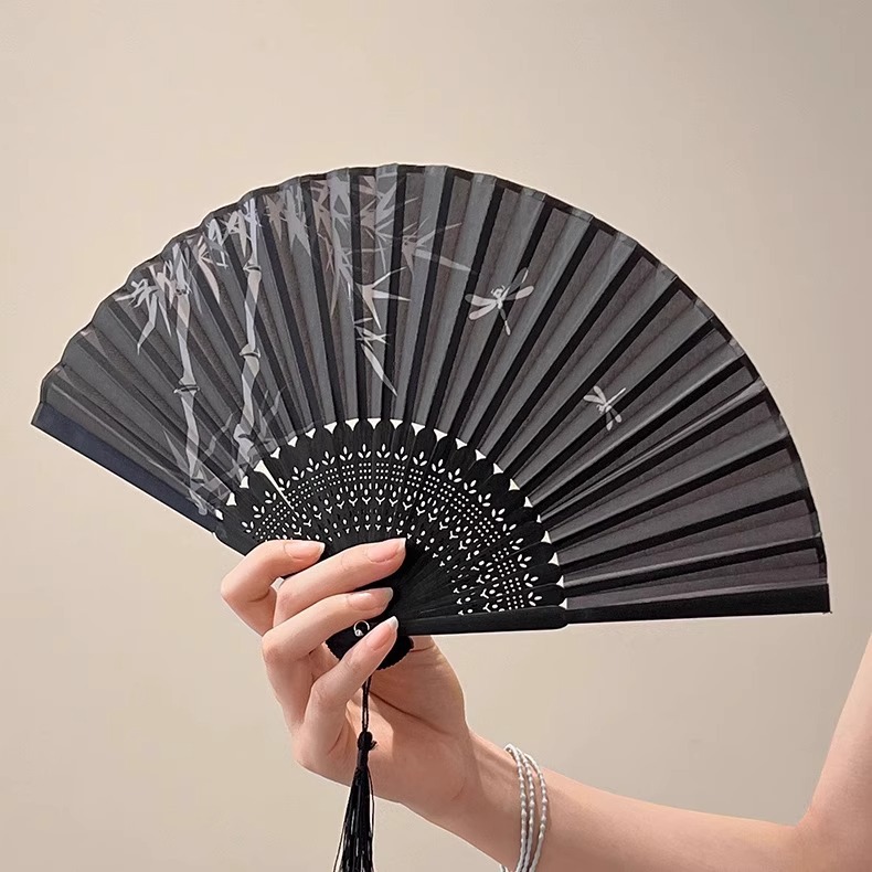 様々なスタイルの中国風折りたたみ扇子、古風漢服、馬面裙、黒扇子