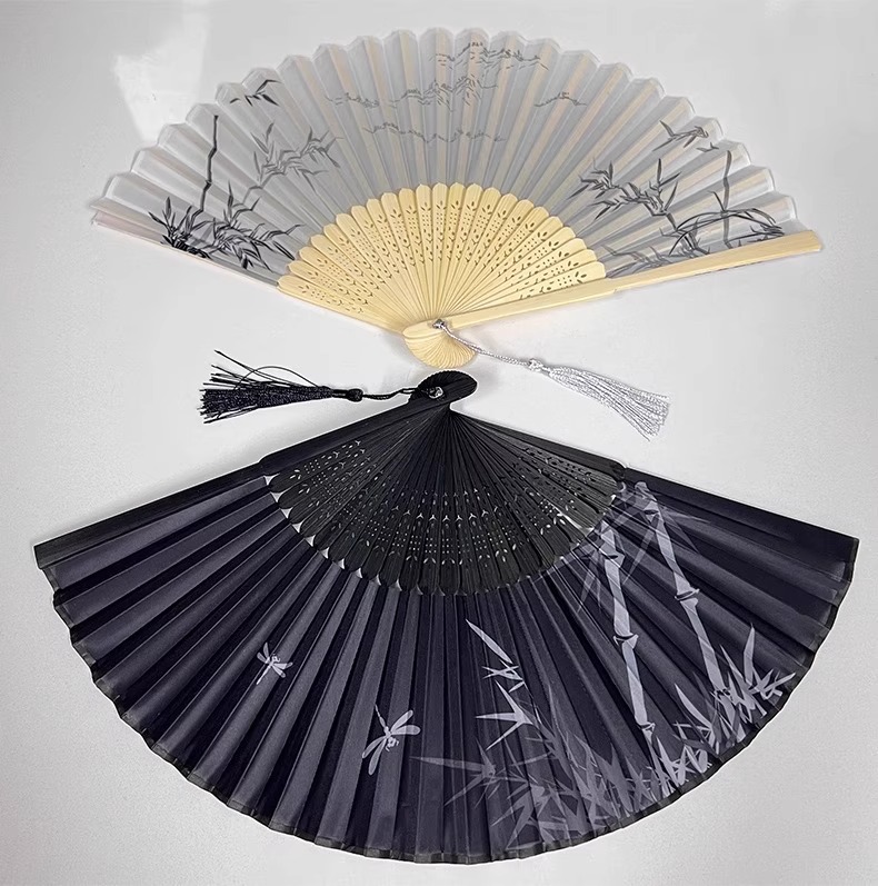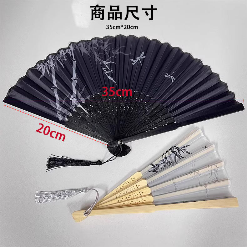 古代風扇子-灰色の竹-1 (展開時20*35cm),古代風扇子-黒竹-1個(展開時20×35cm)