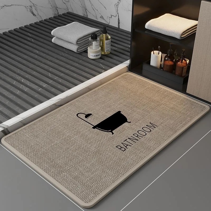 亚麻硅藻泥编织浴室脚垫卫生间吸水地垫洗手间耐脏防摔地毯门垫