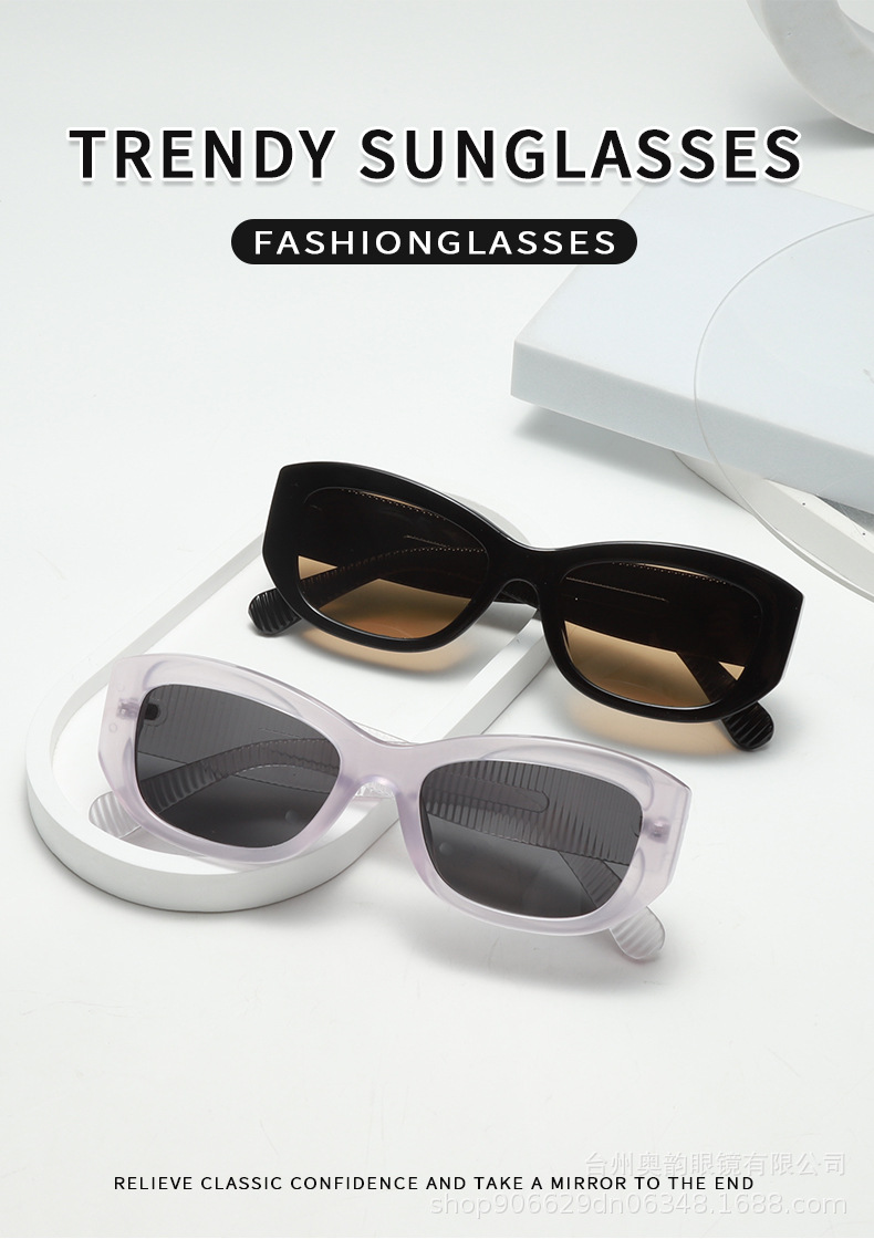 ヨーロッパとアメリカのレトロなリゾートスタイルのポリゴンキャットアイサングラス、ハイエンドの凹面形状の抗UVサングラストレンド