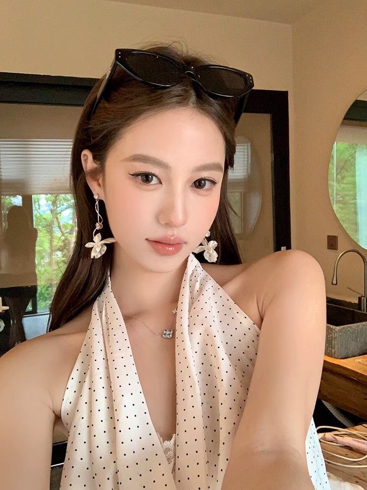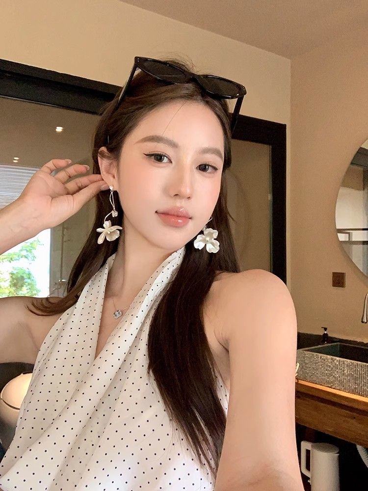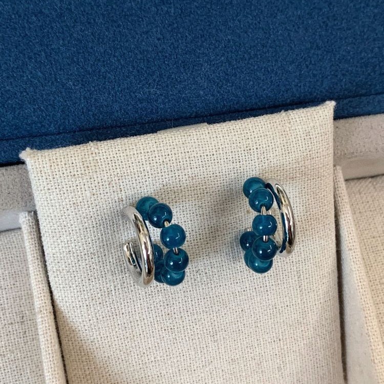 蔚蓝 韩国天然石串珠耳环小众设计感新款ins复古百搭日常通勤耳饰