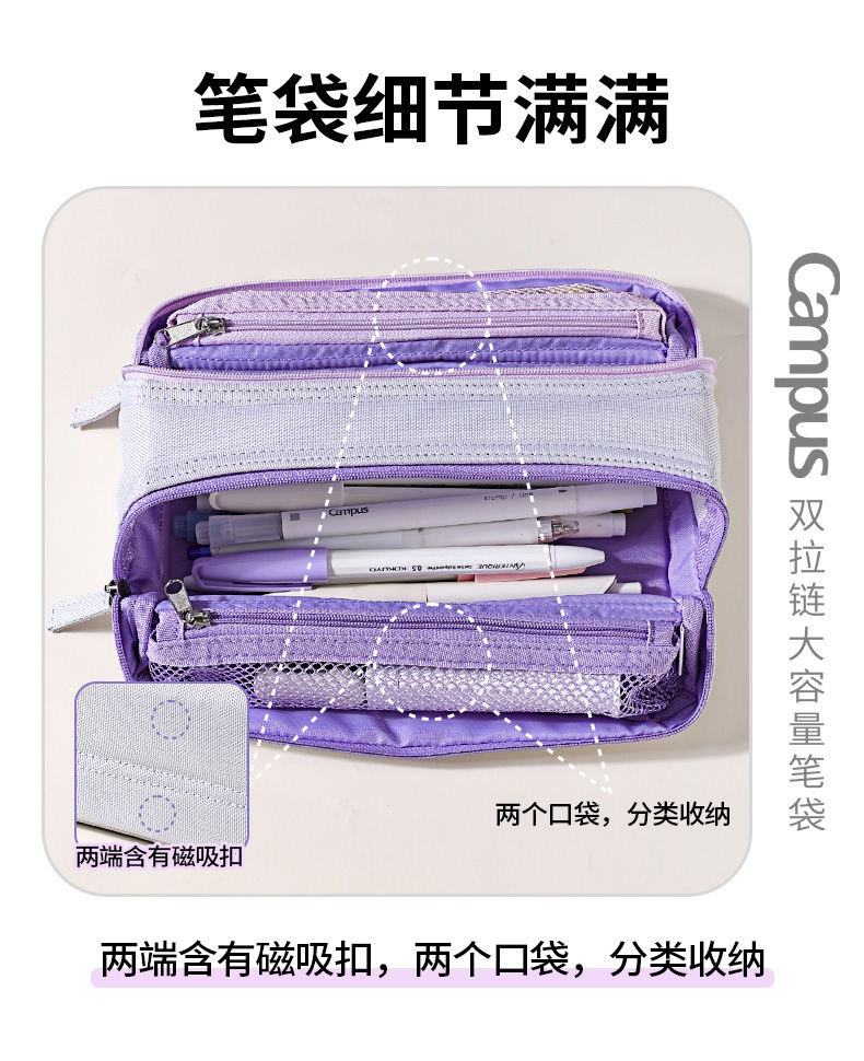 新製品 コクヨ キャンパス ダブルジッパー 大容量筆箱 学生用ポータブル筆箱 パーティション文具収納
