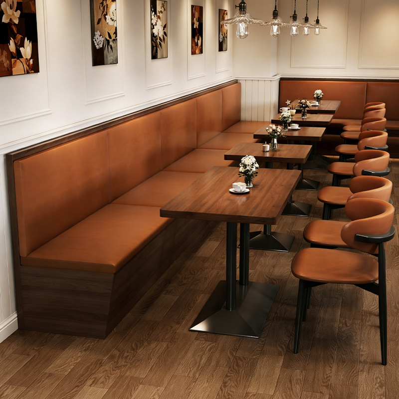 西餐厅卡座沙发复古餐厅奶茶甜品咖啡店实木餐椅酒吧酒馆餐桌商用