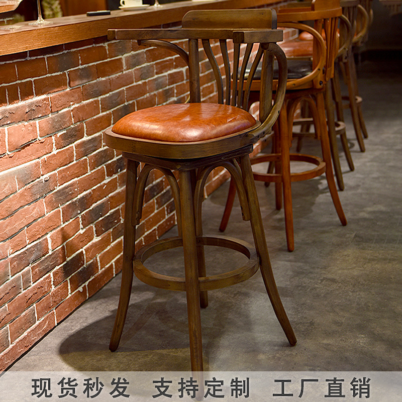 レトロでシンプルなハイバーテーブルとチェア、回転式ハイバースツール、バーチェア、アメリカンスタイルのクリアバーバー、無垢材の小さなアパートメントバーテーブル