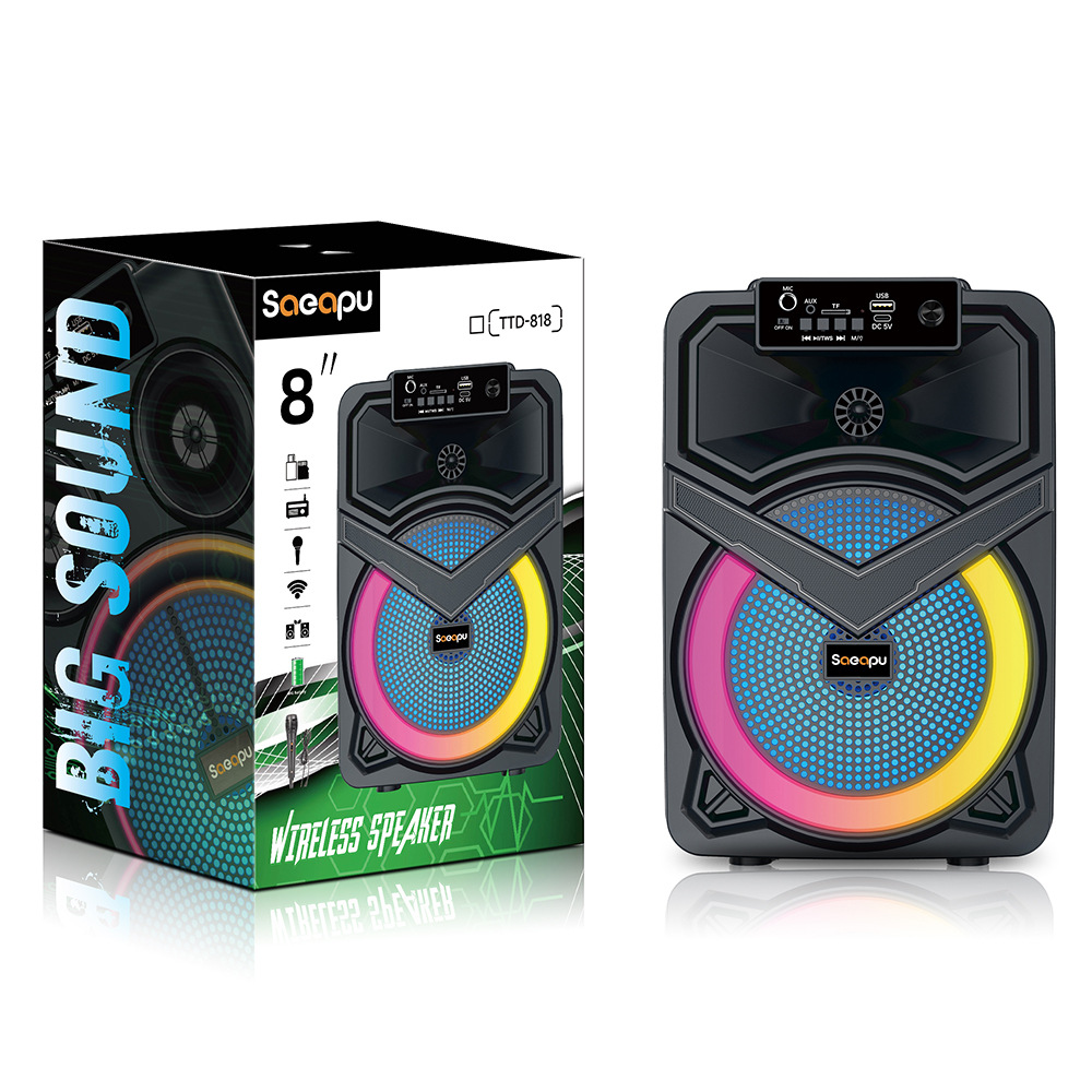 跨境新款8寸蓝牙音响户外K歌便携彩灯有线麦非洲热销音质好音箱