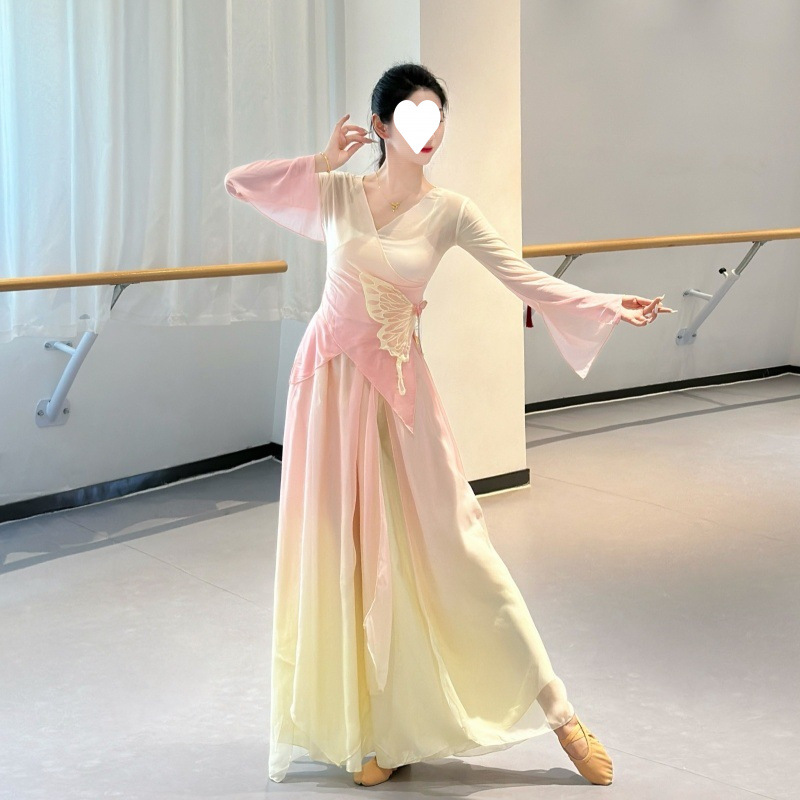 古典舞踊のグラデーション練習蝶妖精トップガーゼエレガントな中国舞踊パフォーマンス衣装スーツ
