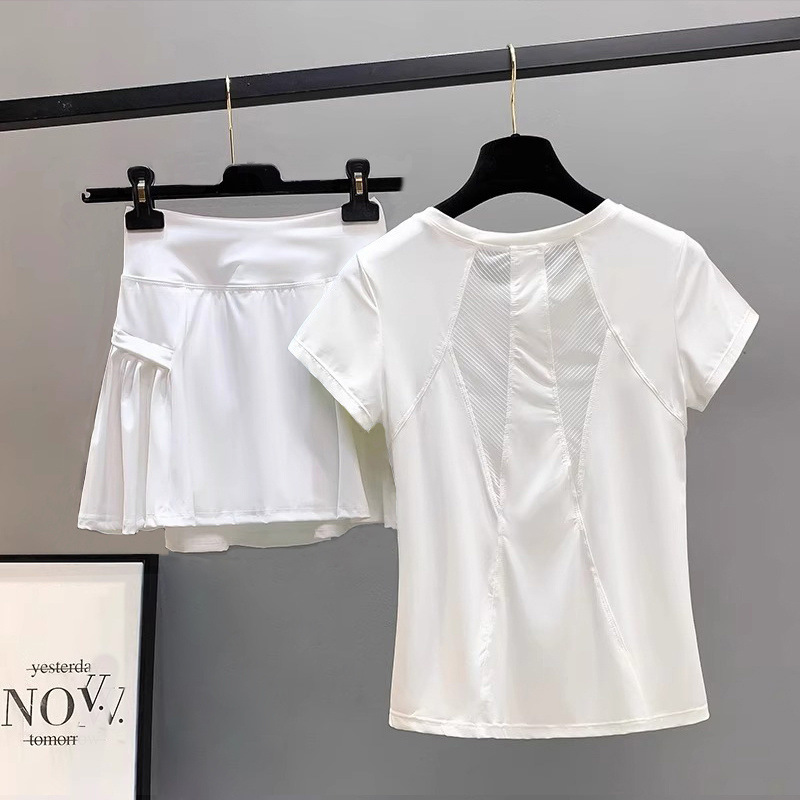 速乾性ランニングスポーツスーツ女性の夏ルーズ痩身フィットネス Tシャツバドミントンショーツヨガウェア 2 点セット