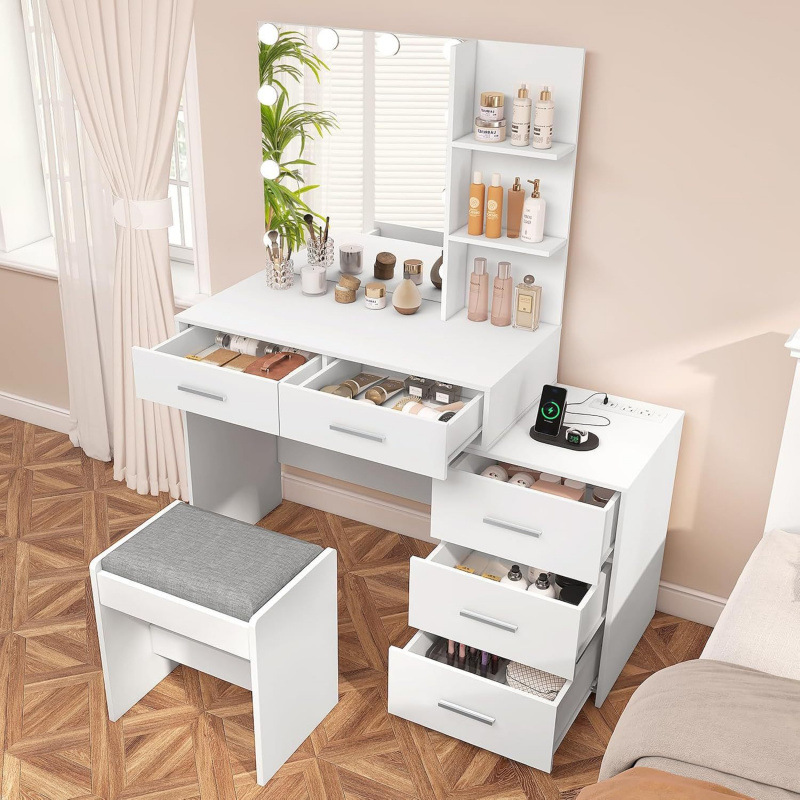 ライト付き寝室用家具、化粧台、化粧スツール付きパネル家具、引き出し収納、クロスボーダー化粧台