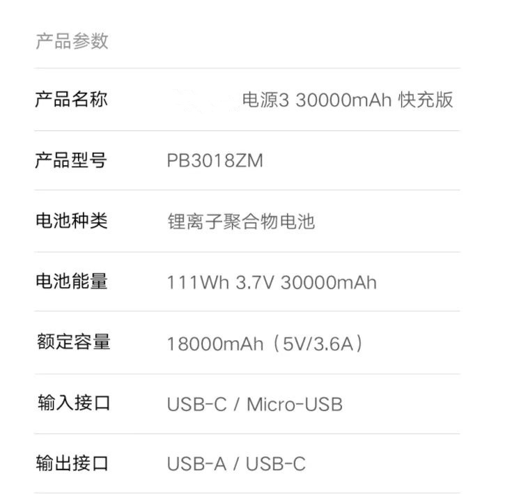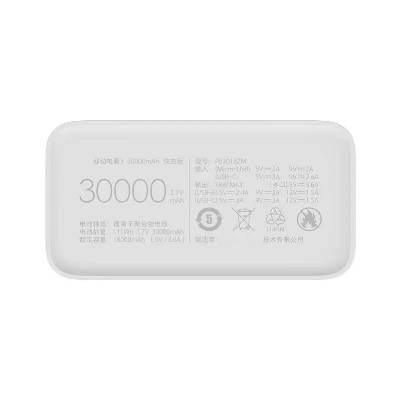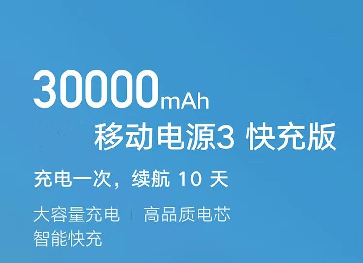 小米3C移动电源3快充版30000mAh充电宝双向PD18W大容量创意适用