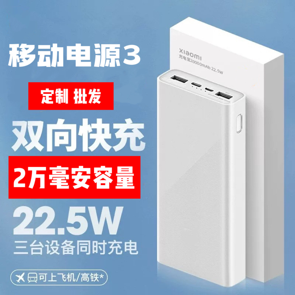 小米3C认证充电宝20000毫安大容量22.5W双向快充企业logo电源适用