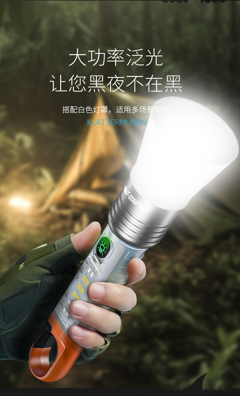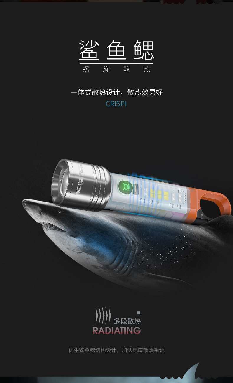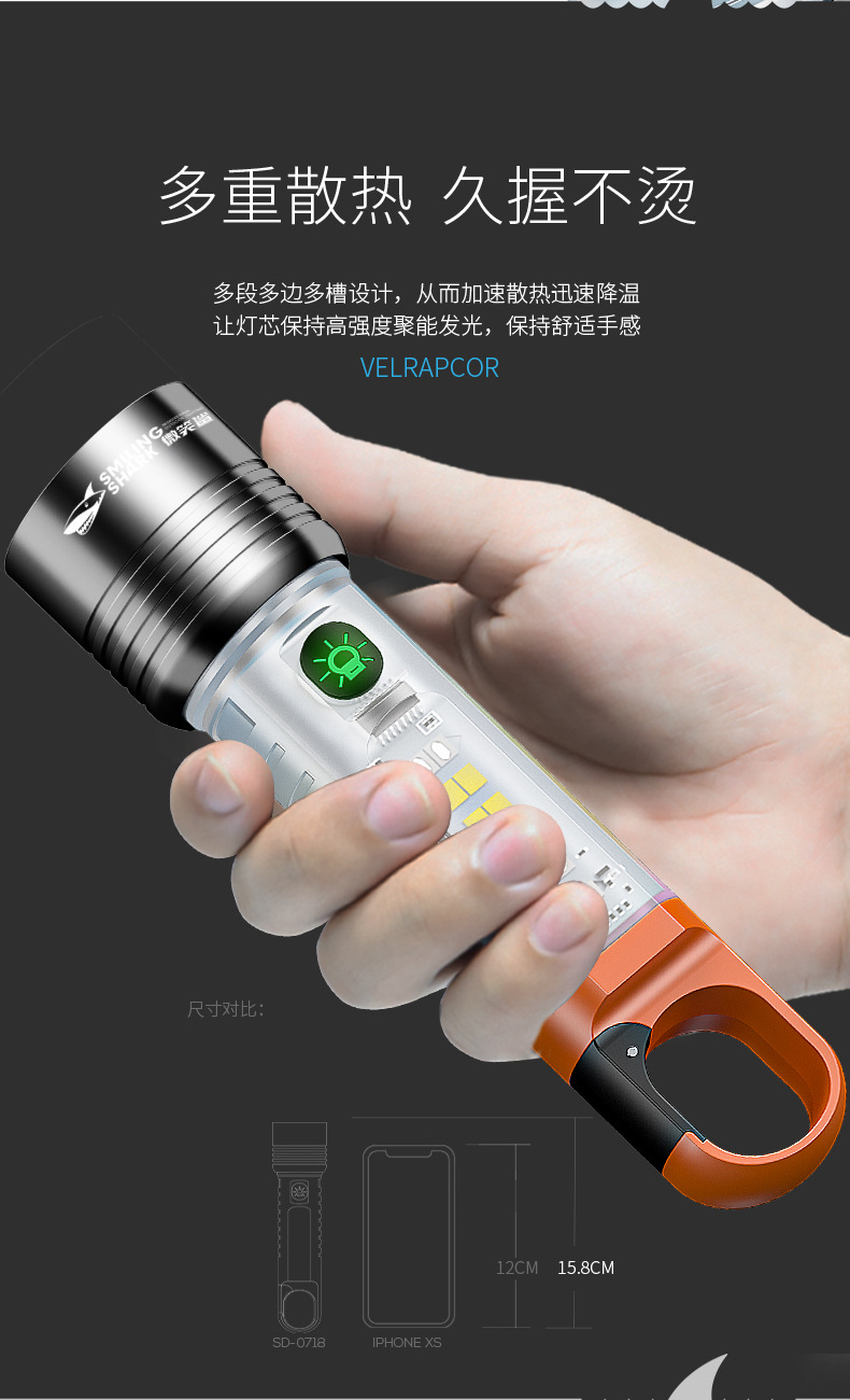 スマイルシャーク透明強力な光懐中電灯伸縮式焦点屋外ポータブルキャンプハンギングライト赤と青の点滅照明 LED ライト