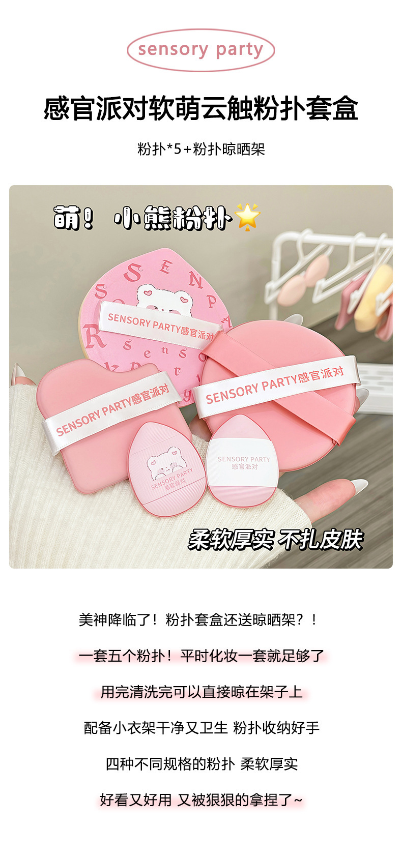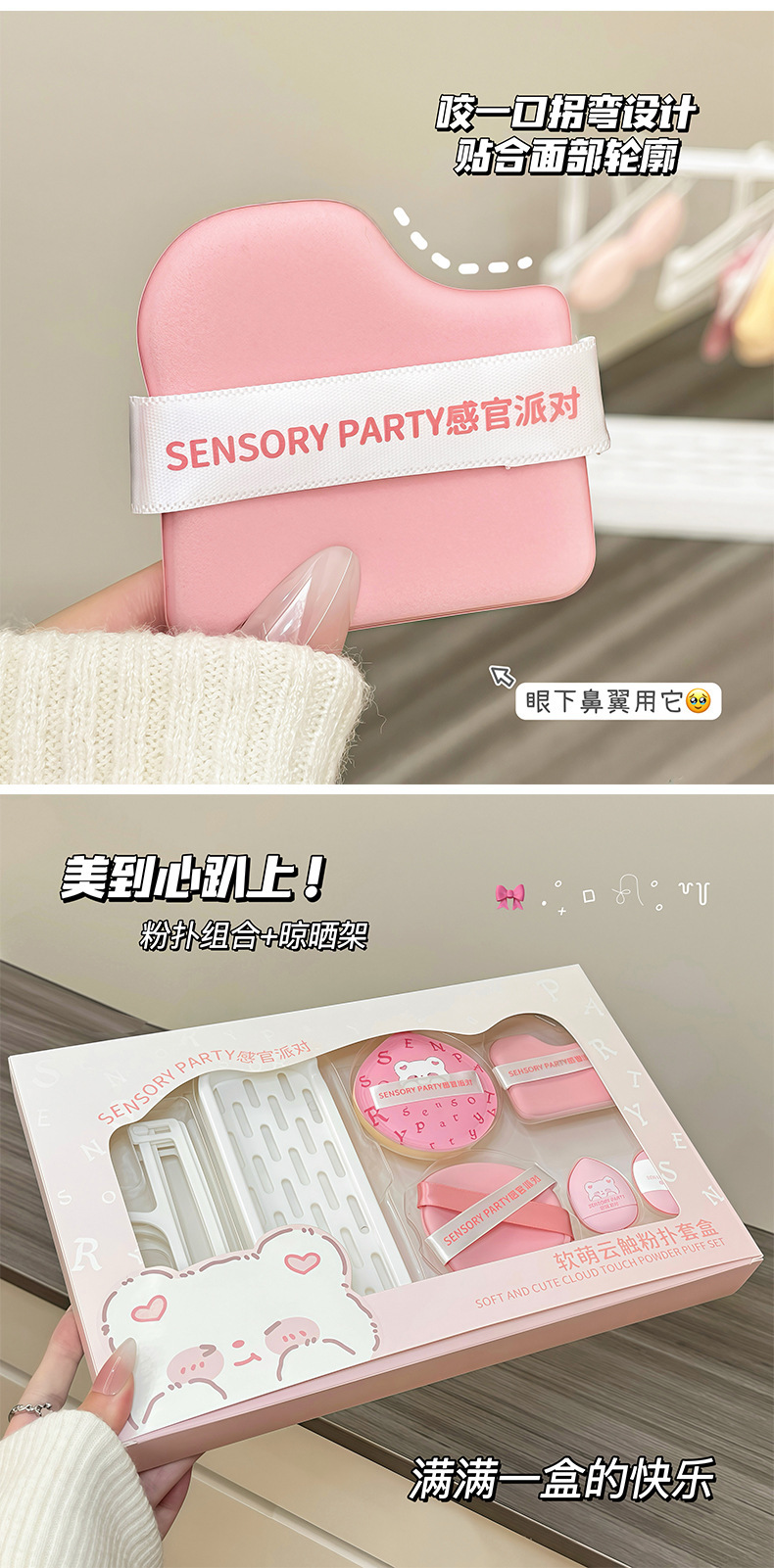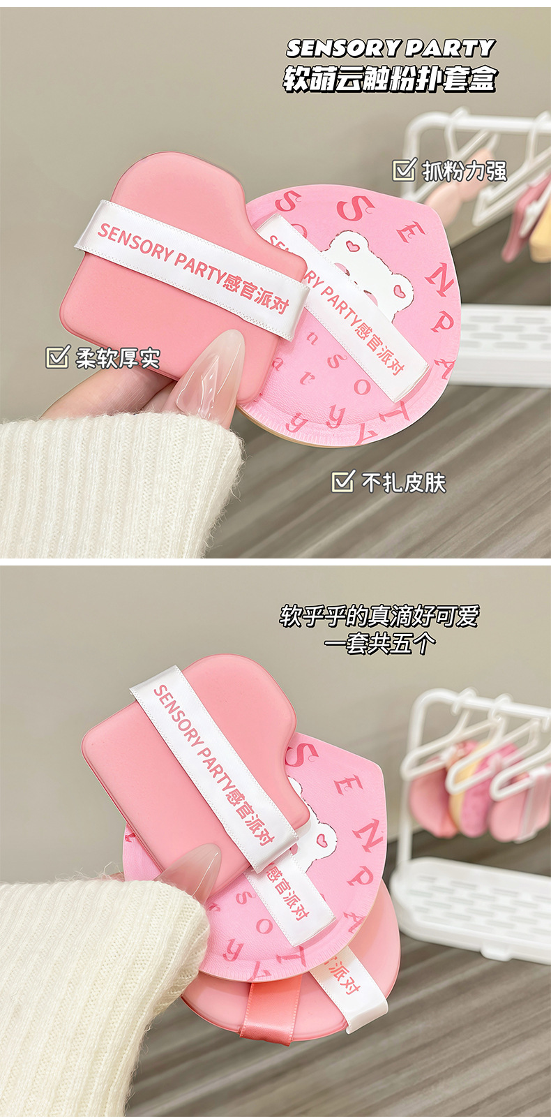 Sensory Party ソフト キュート クラウド タッチ パウダー パフ セット スーパーソフト ノンイーティング パウダー ハイグロス リキッド ファンデーション ブラッシュ コンシーラー 植毛スポンジ