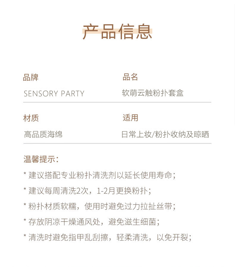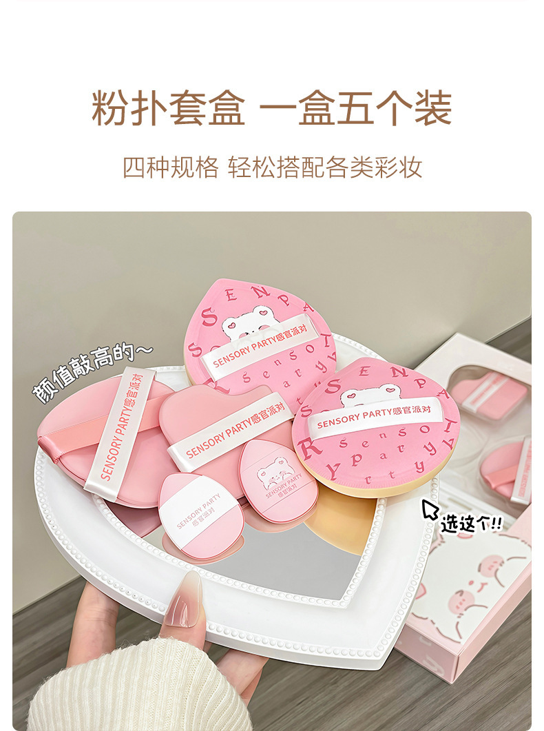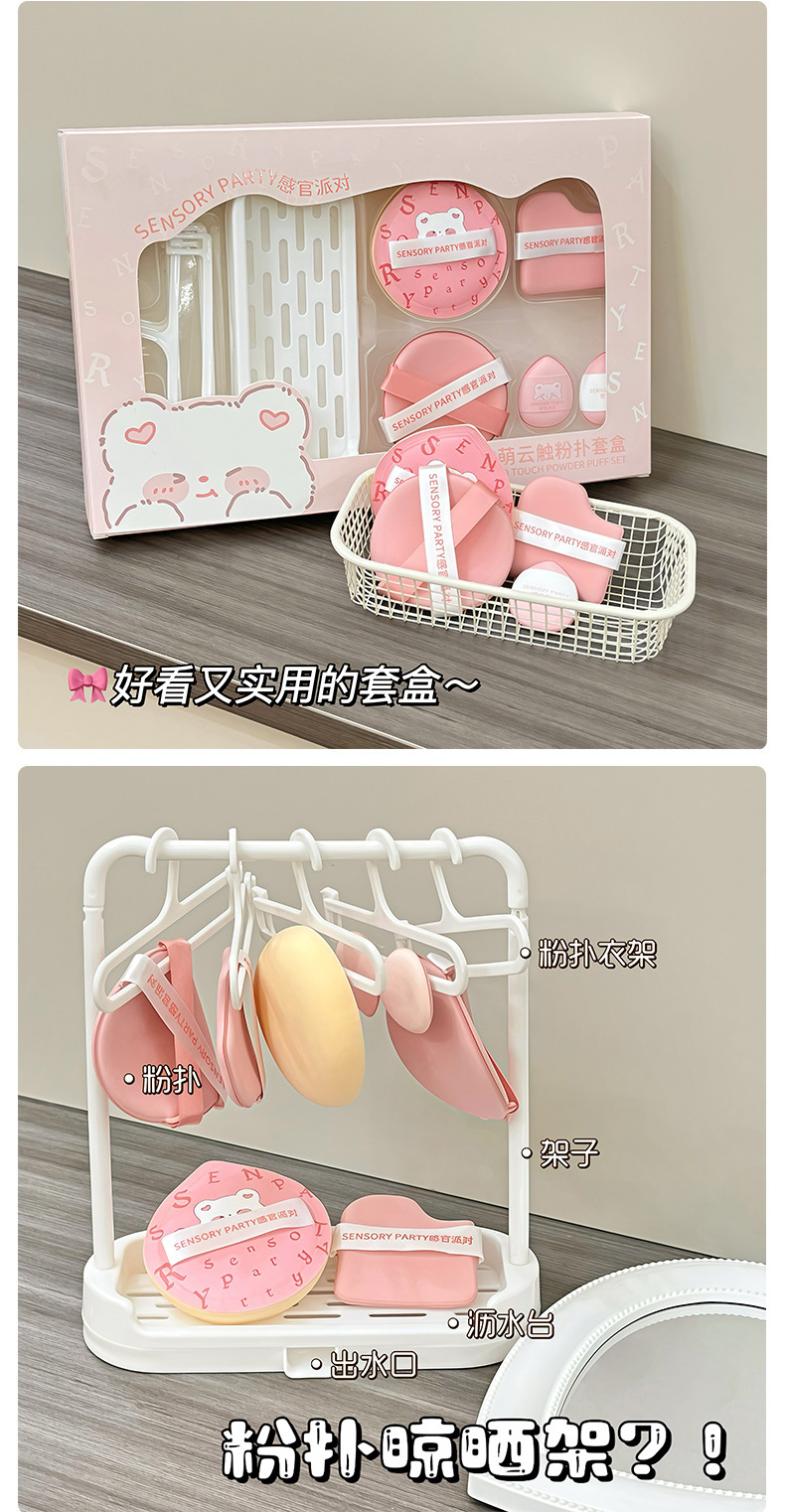 Sensory Party ソフト キュート クラウド タッチ パウダー パフ セット スーパーソフト ノンイーティング パウダー ハイグロス リキッド ファンデーション ブラッシュ コンシーラー 植毛スポンジ