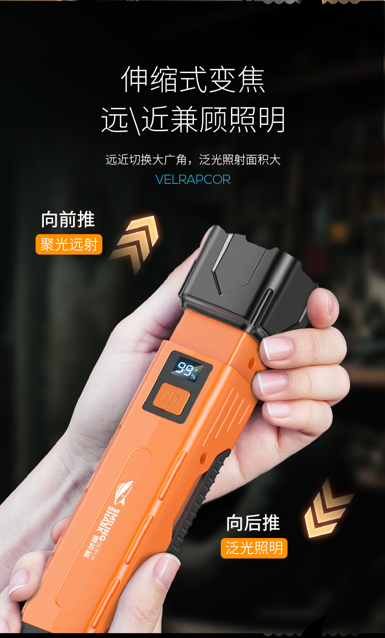 クロスボーダー爆金強光ミニ伸縮懐中電灯小家庭用USB充COBサイドライトアルミ合金懐中電灯卸売り