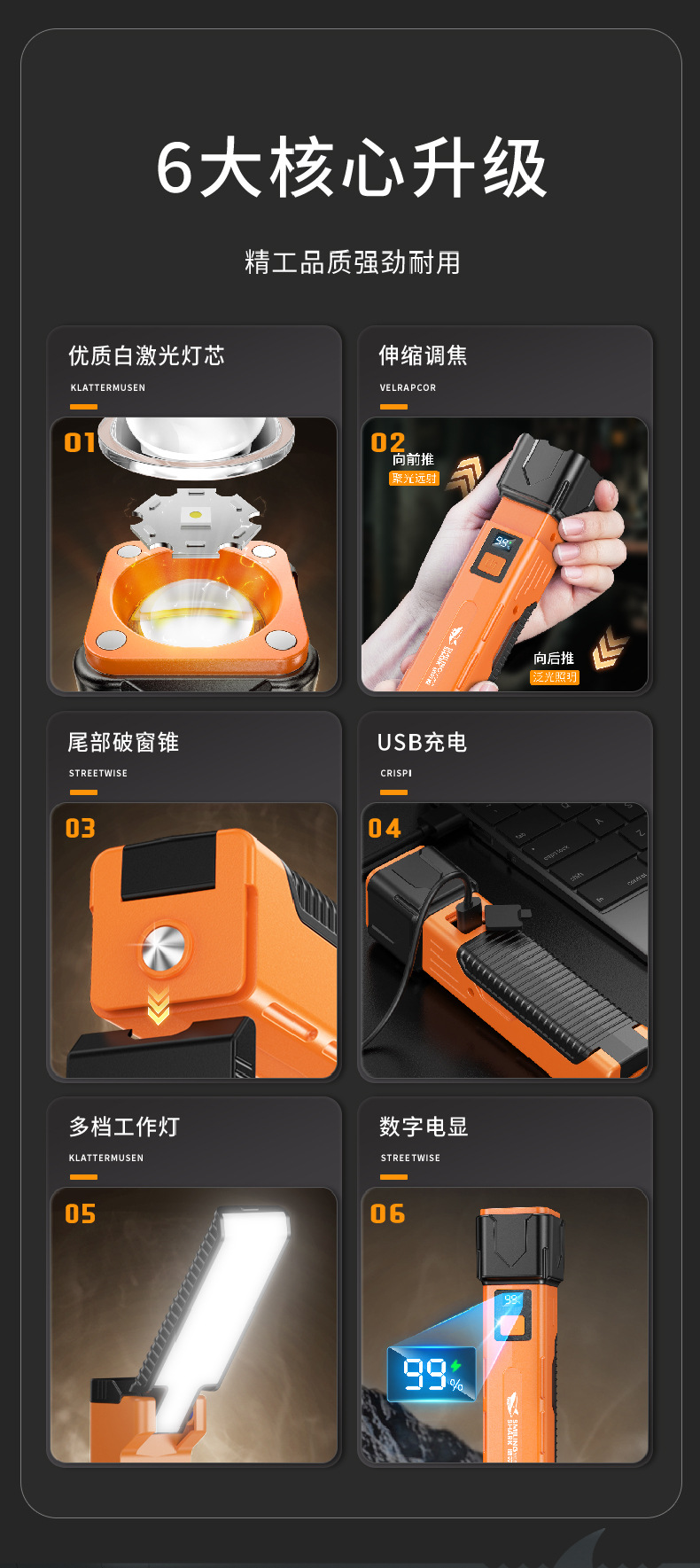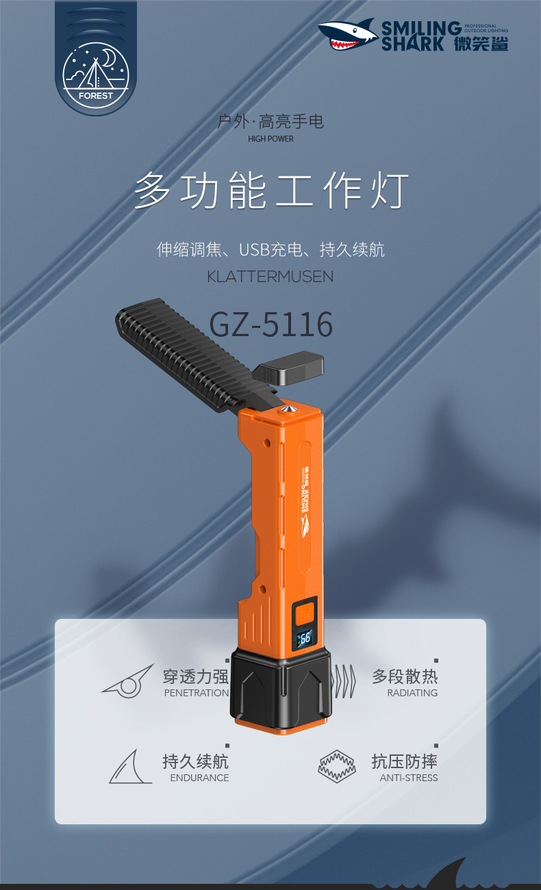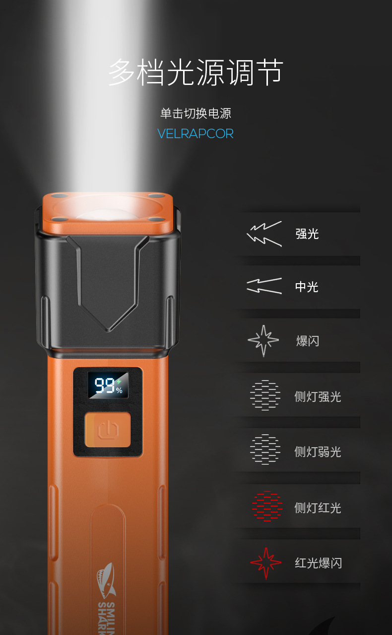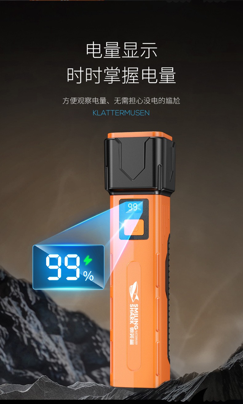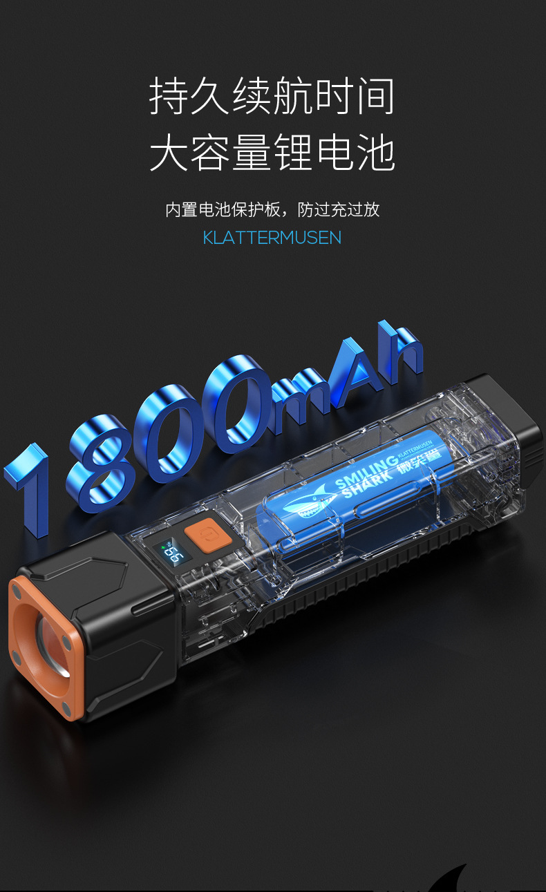 笑顔サメ屋外ミニハイライト懐中電灯持続持続持続usb急速充電多段階調節機能