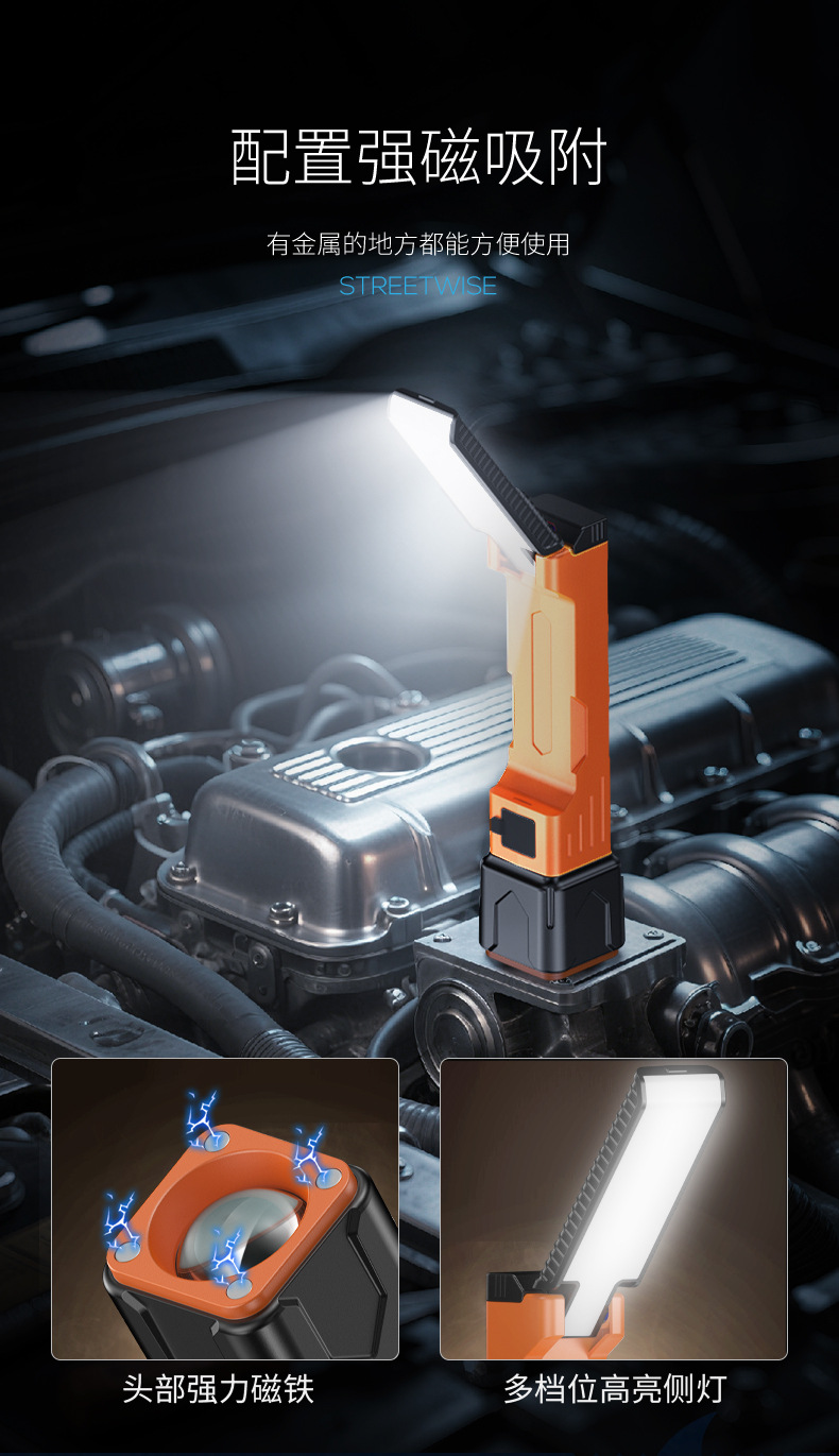 Led作業灯自動車修理灯充電修理灯強光多機能照明灯屋外超亮強磁気懐中電灯