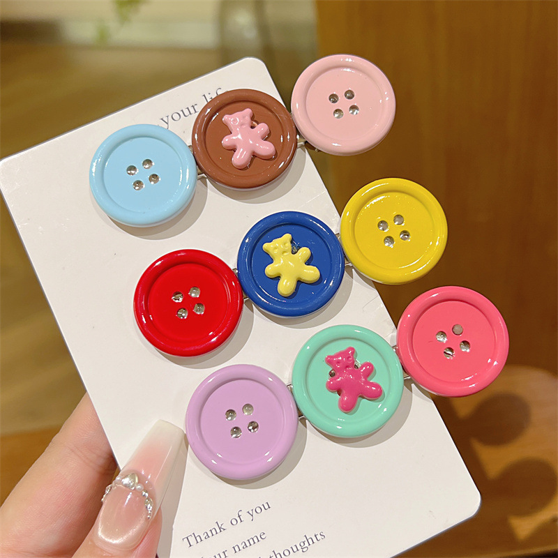 可爱撞色纽扣发夹女2025新款高级感少女心发卡侧边碎发刘海夹头饰