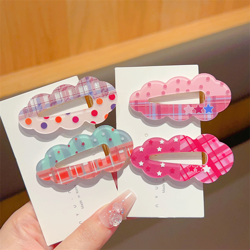 甘い水玉模様のチェック柄の雲のヘアピン、ガーリーで万能なカモノハシクリップ、サイドクリップ、かわいいヘアピン、小さなクリップ