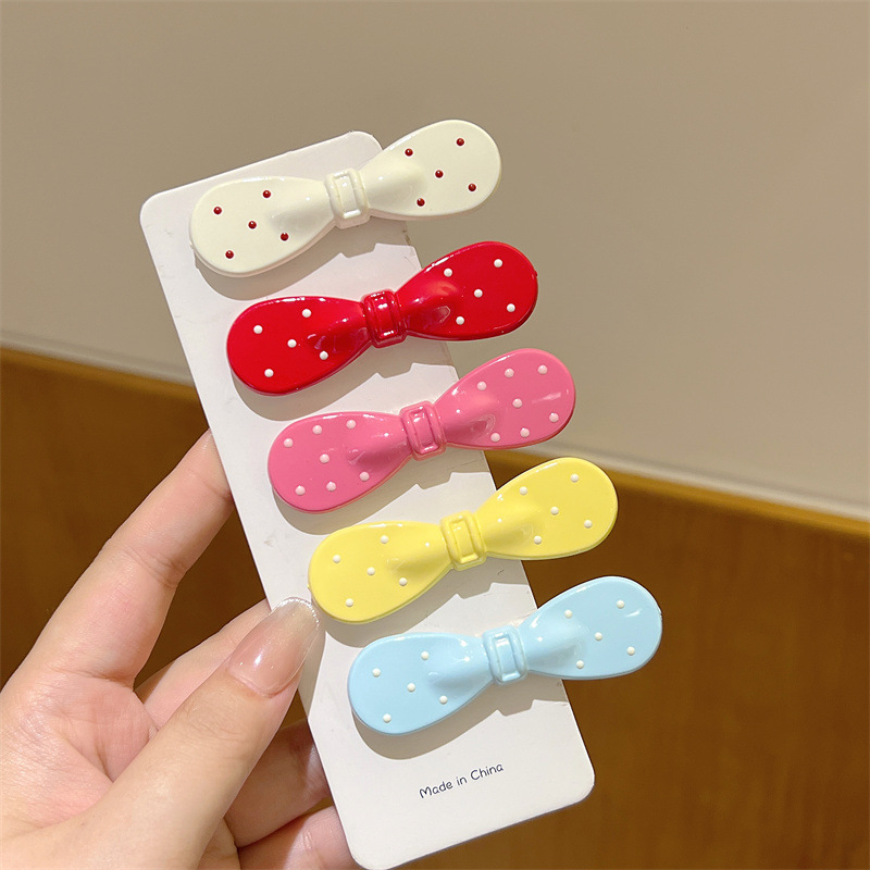 甜美马卡龙撞色蝴蝶结发夹前额碎发侧边夹刘海鸭嘴夹可爱发卡发饰