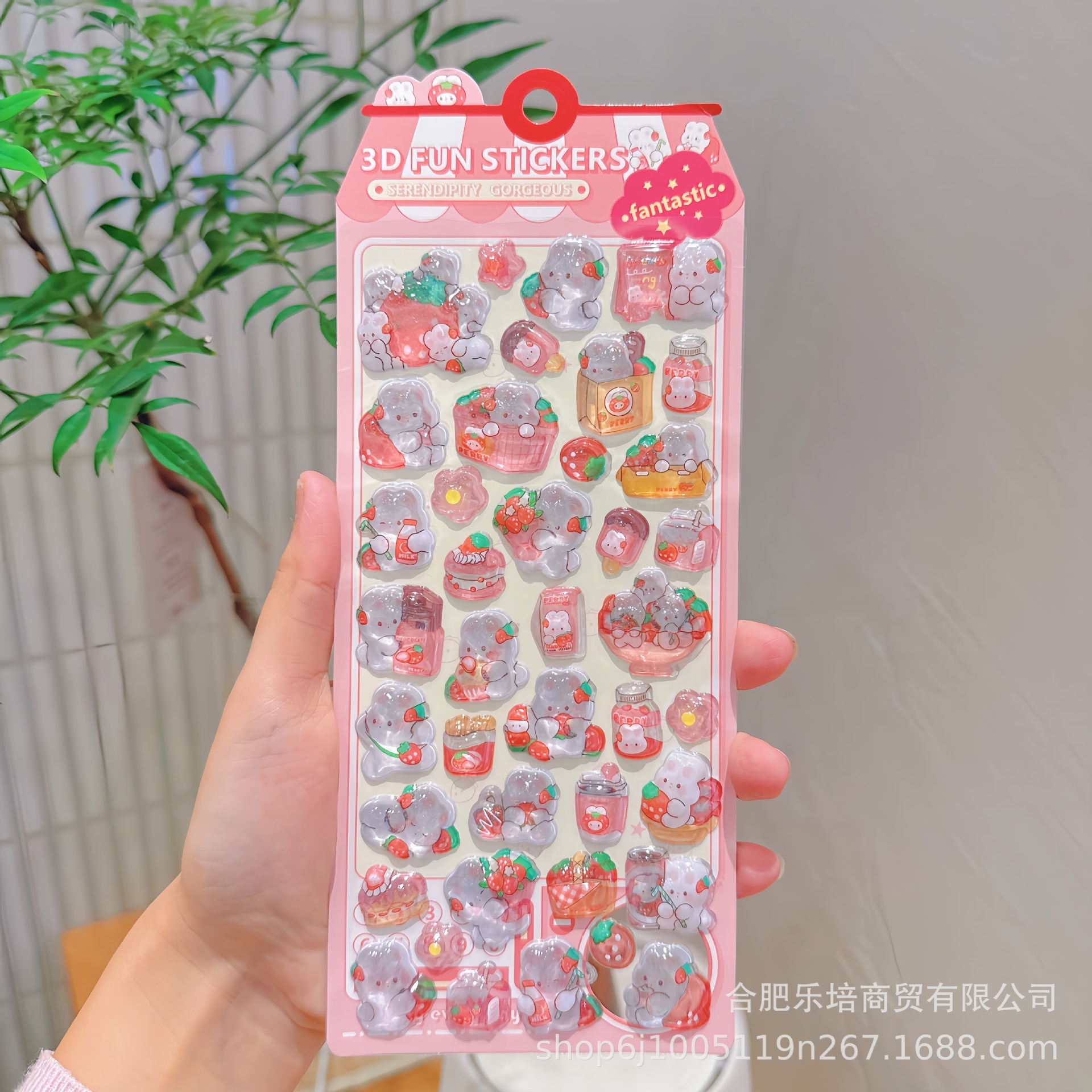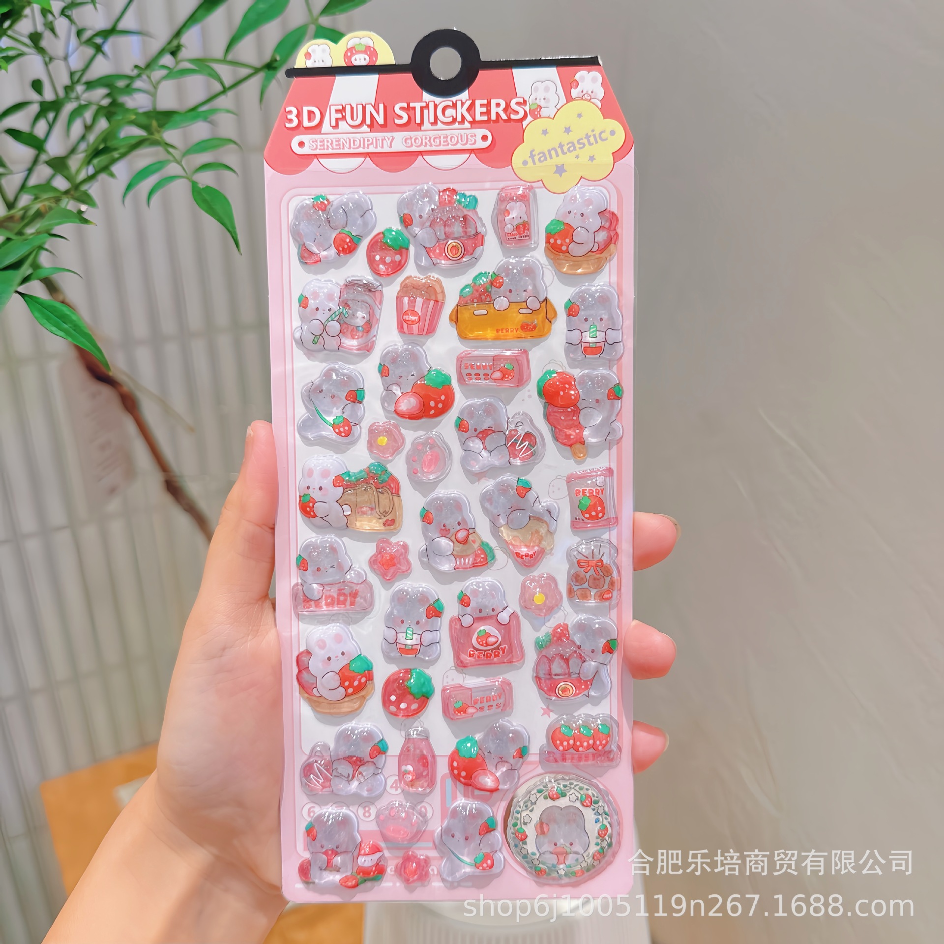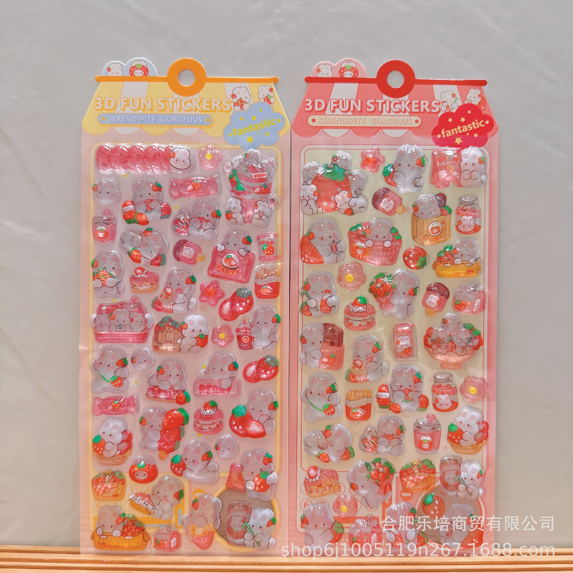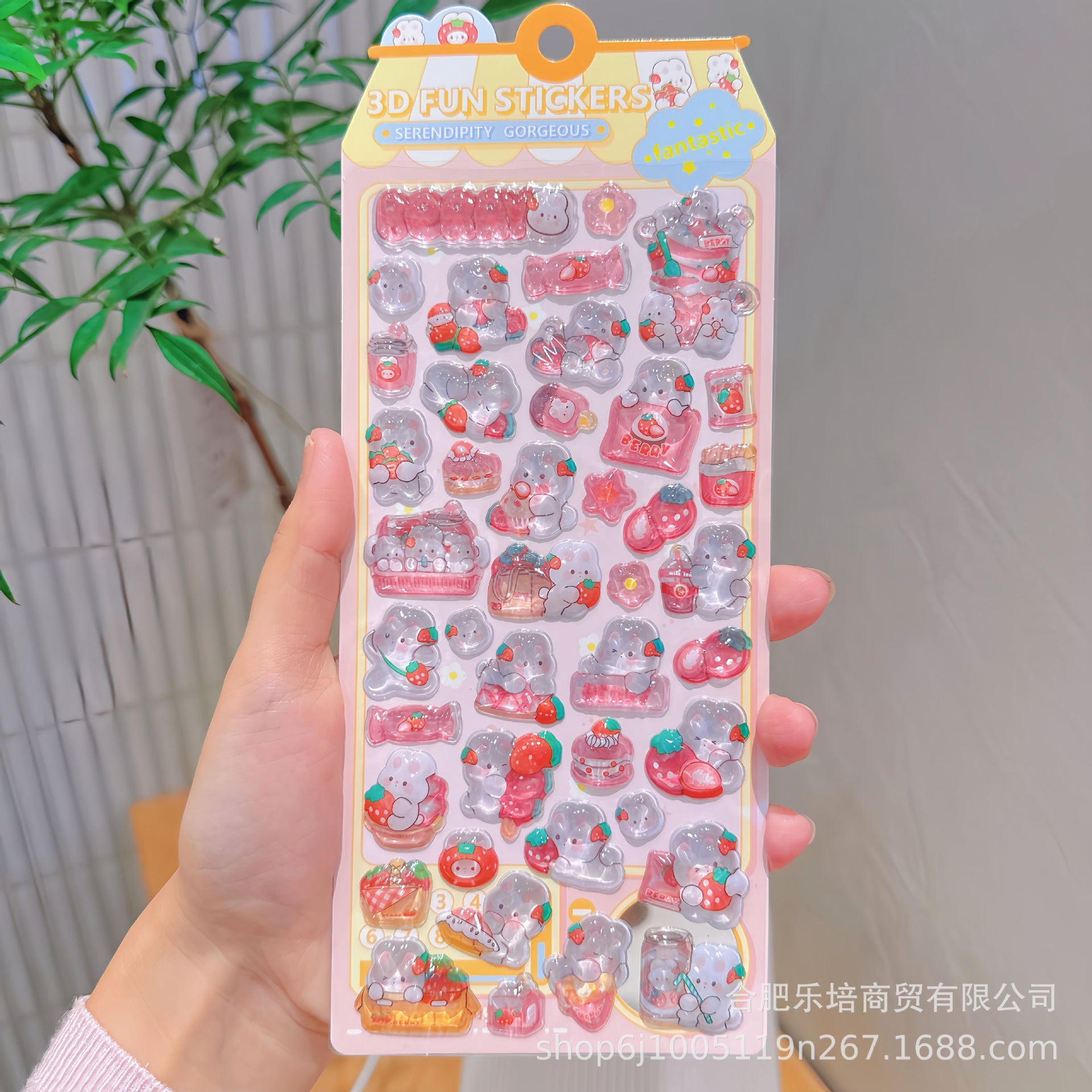 3D粉兔兔可爱草莓小兔子浮雕立体水晶儿童贴纸女孩手工装饰素材贴