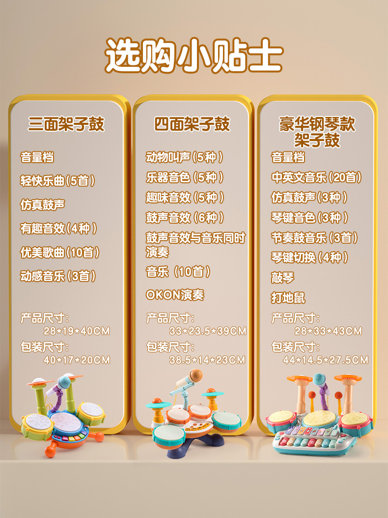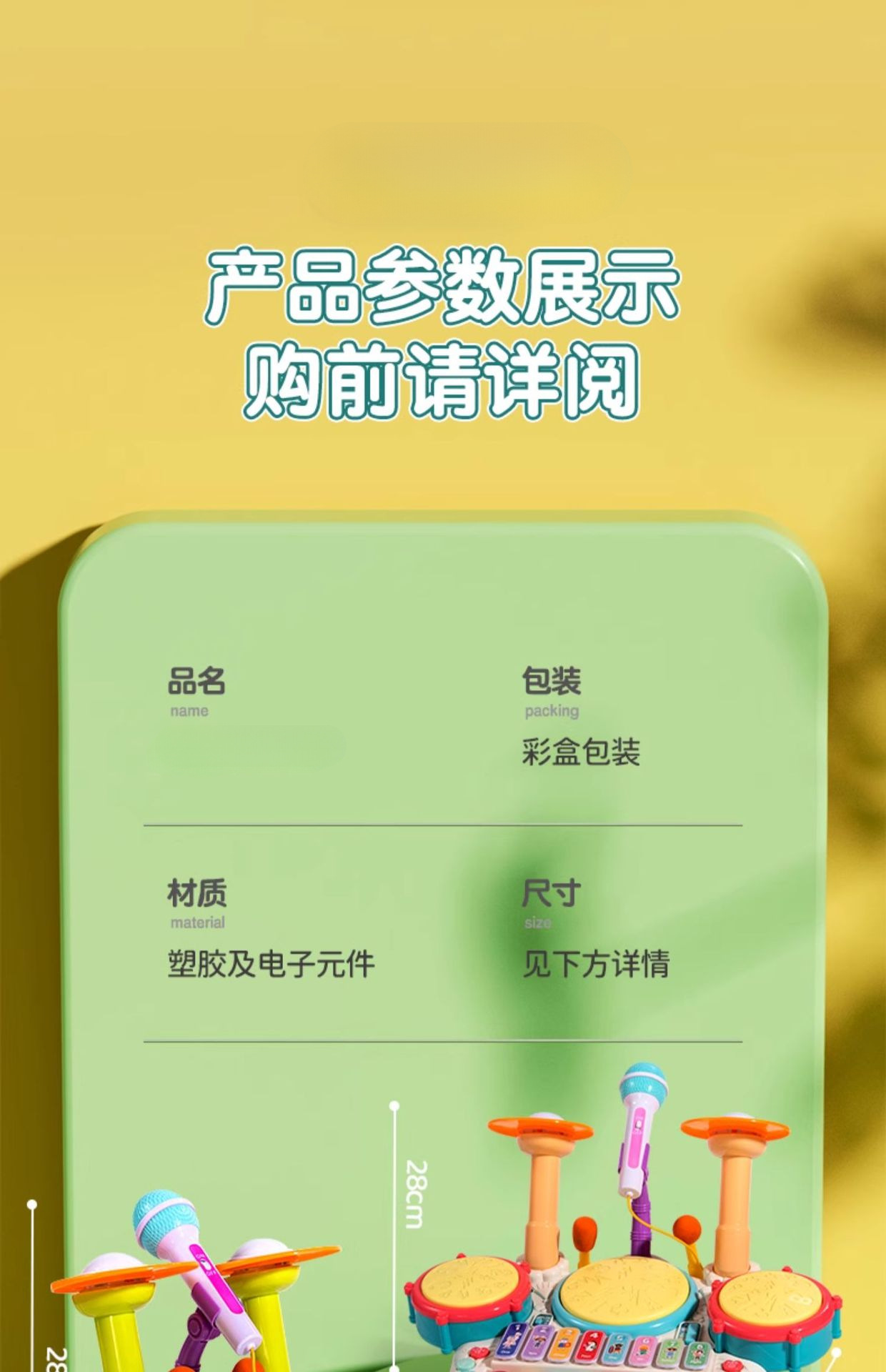 儿童打鼓玩具乐器宝宝敲打架子鼓手拍鼓婴幼儿2小鼓1一3岁10个月9