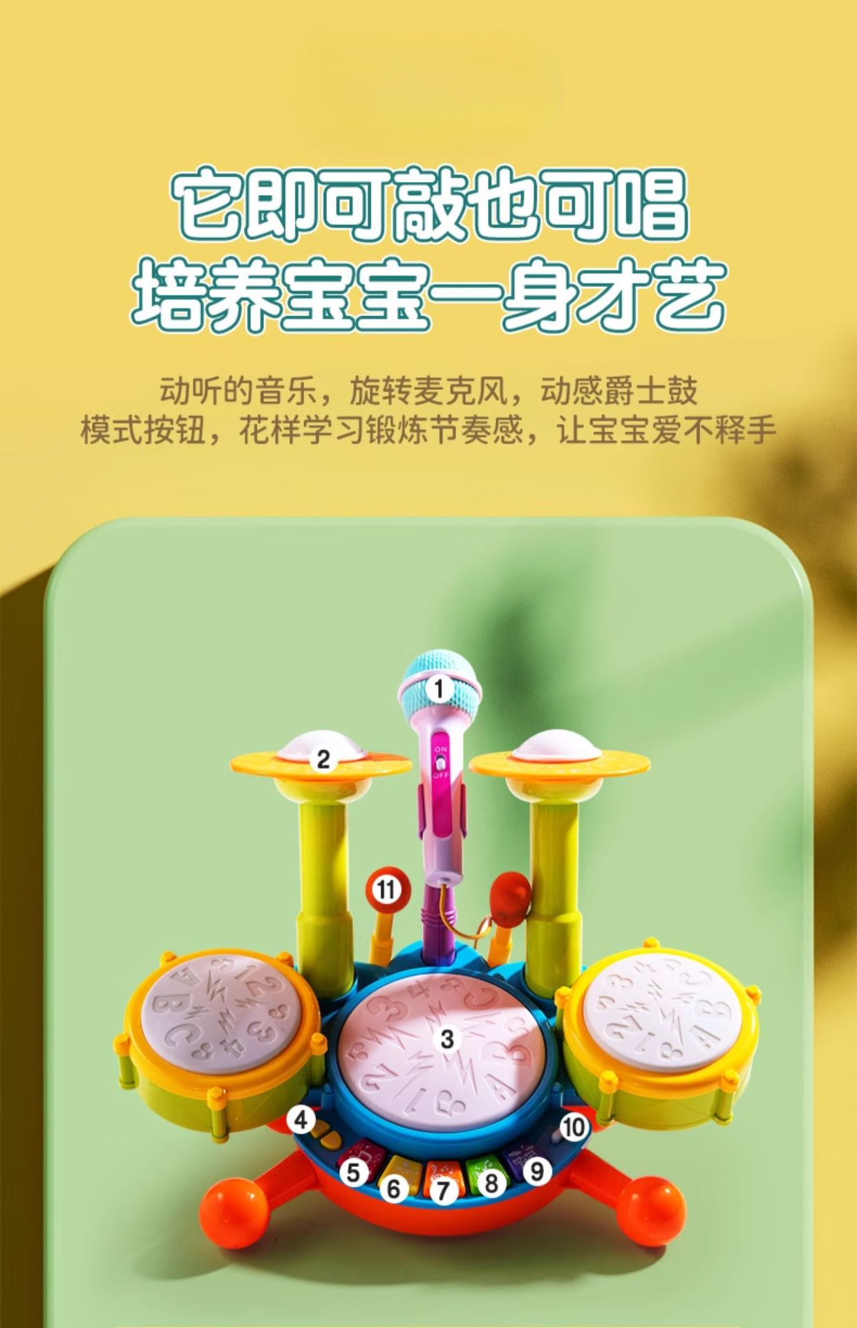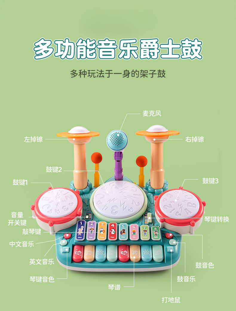 儿童钢琴架子鼓二合一玩具初学者启蒙爵士鼓乐器宝宝打鼓岁男孩