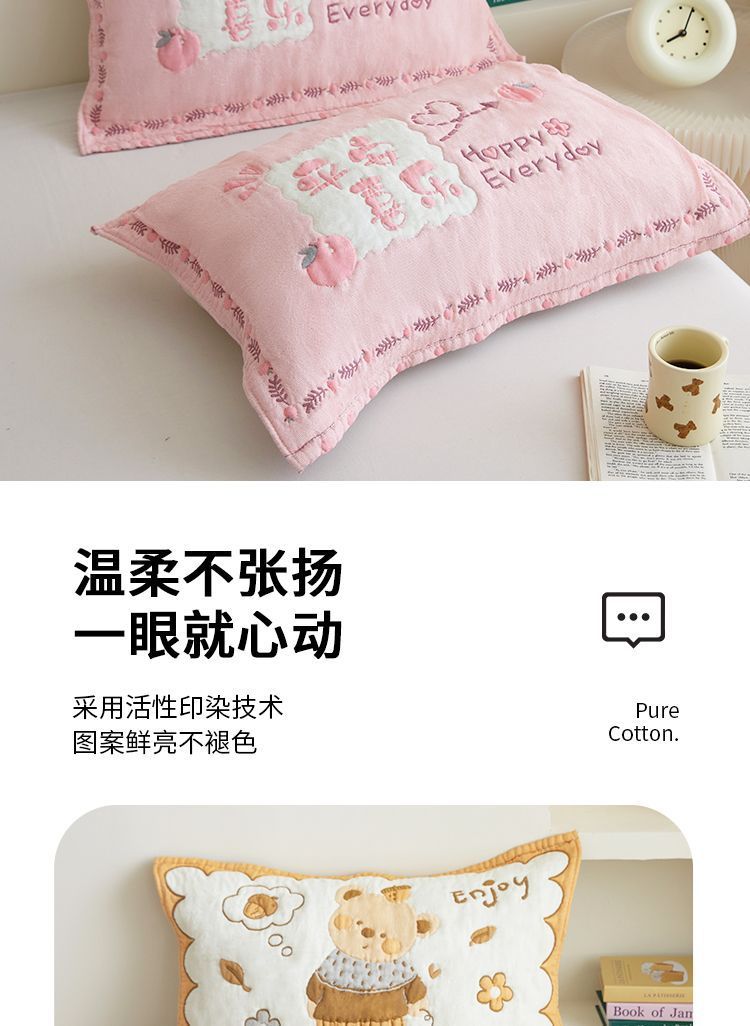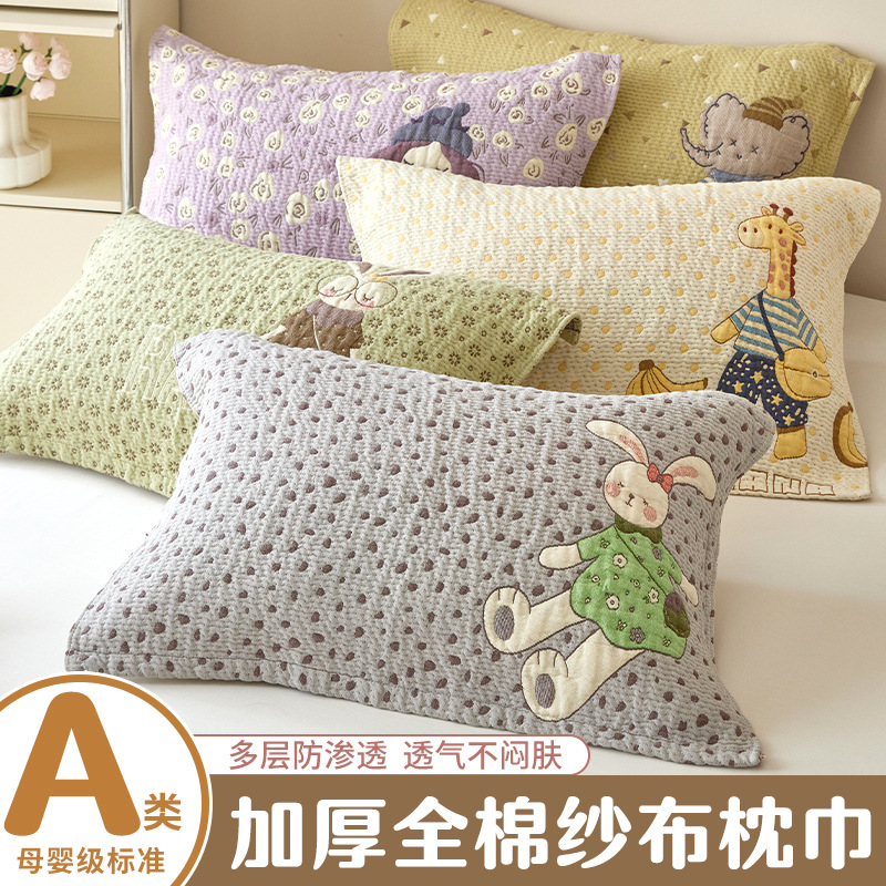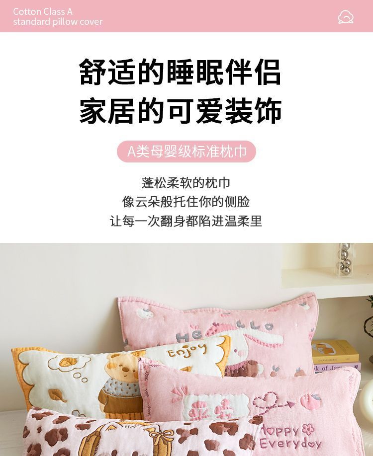 a多层纱布枕巾四季通用男女柔软泡芙枕头儿童枕芯卡通家用盖巾