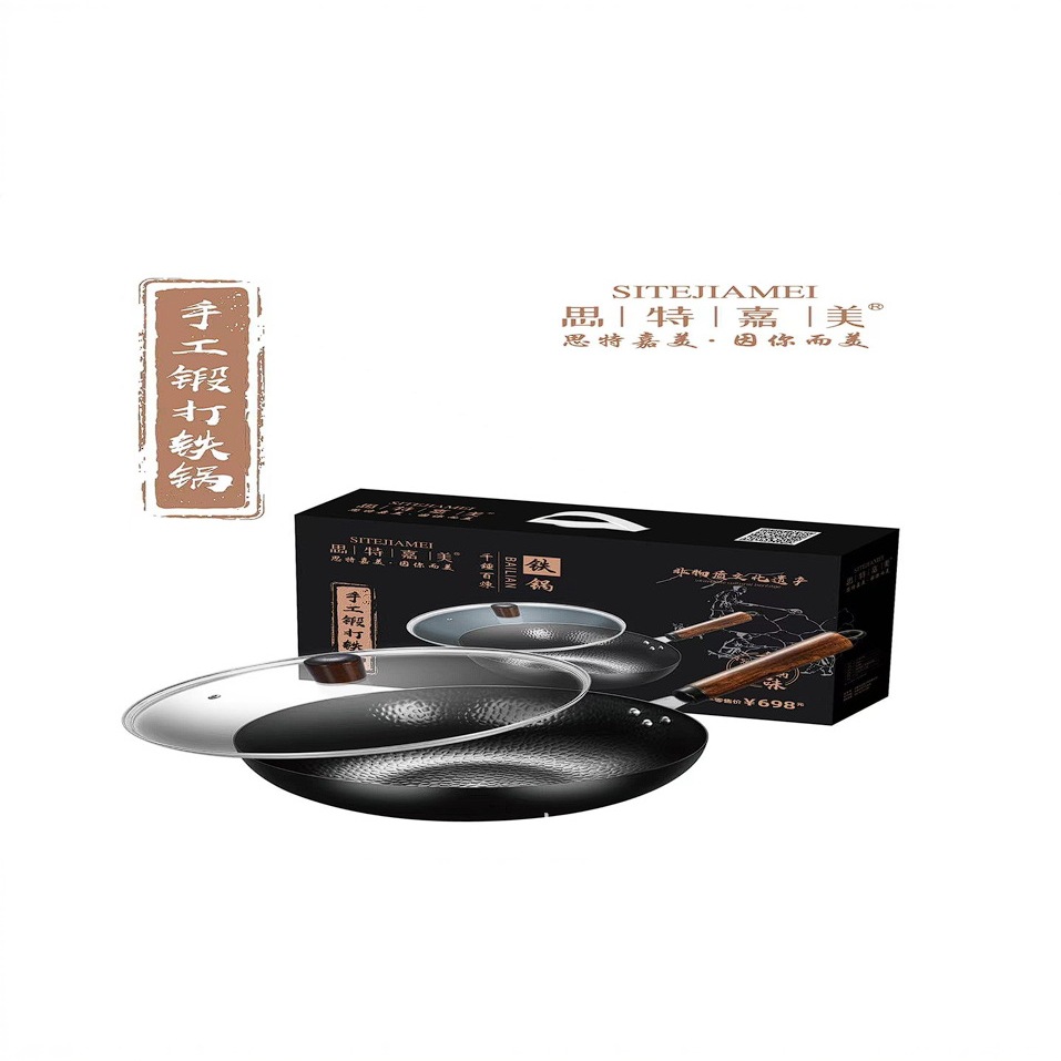 Sitejiamei-手鍛造鉄鍋 32 センチメートル家庭用ノンスティック調理鍋未コーティング張丘鉄鍋無煙