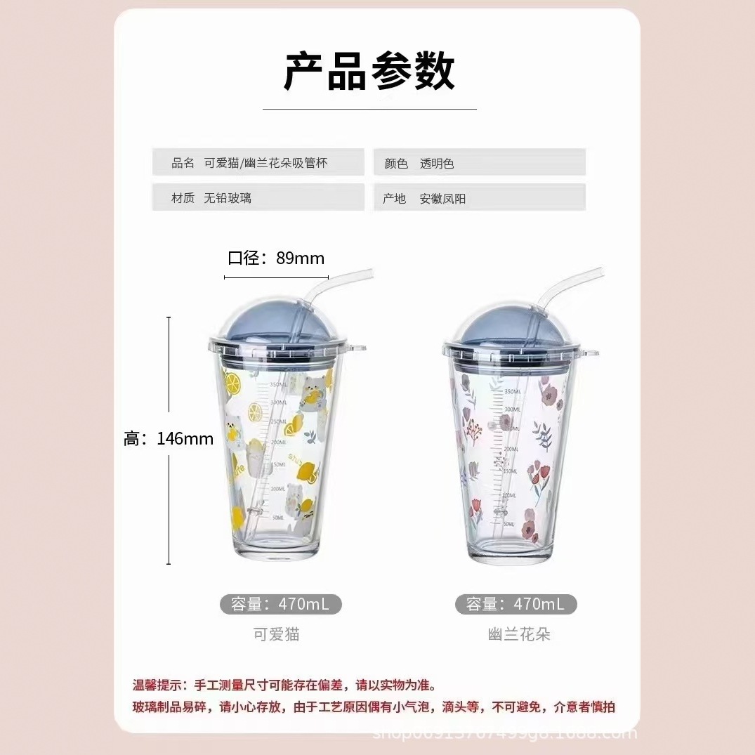 艾格莱雅可爱猫吸管杯Y1018-1E刻度杯 礼品杯果汁杯网红杯代发
