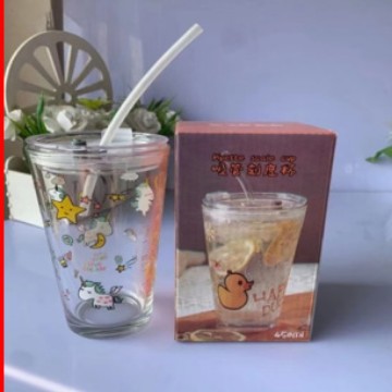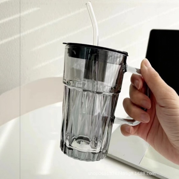 鸿阳玻璃吸管杯把杯啤酒杯牛奶杯创意玻璃把杯开业活动送客户礼品