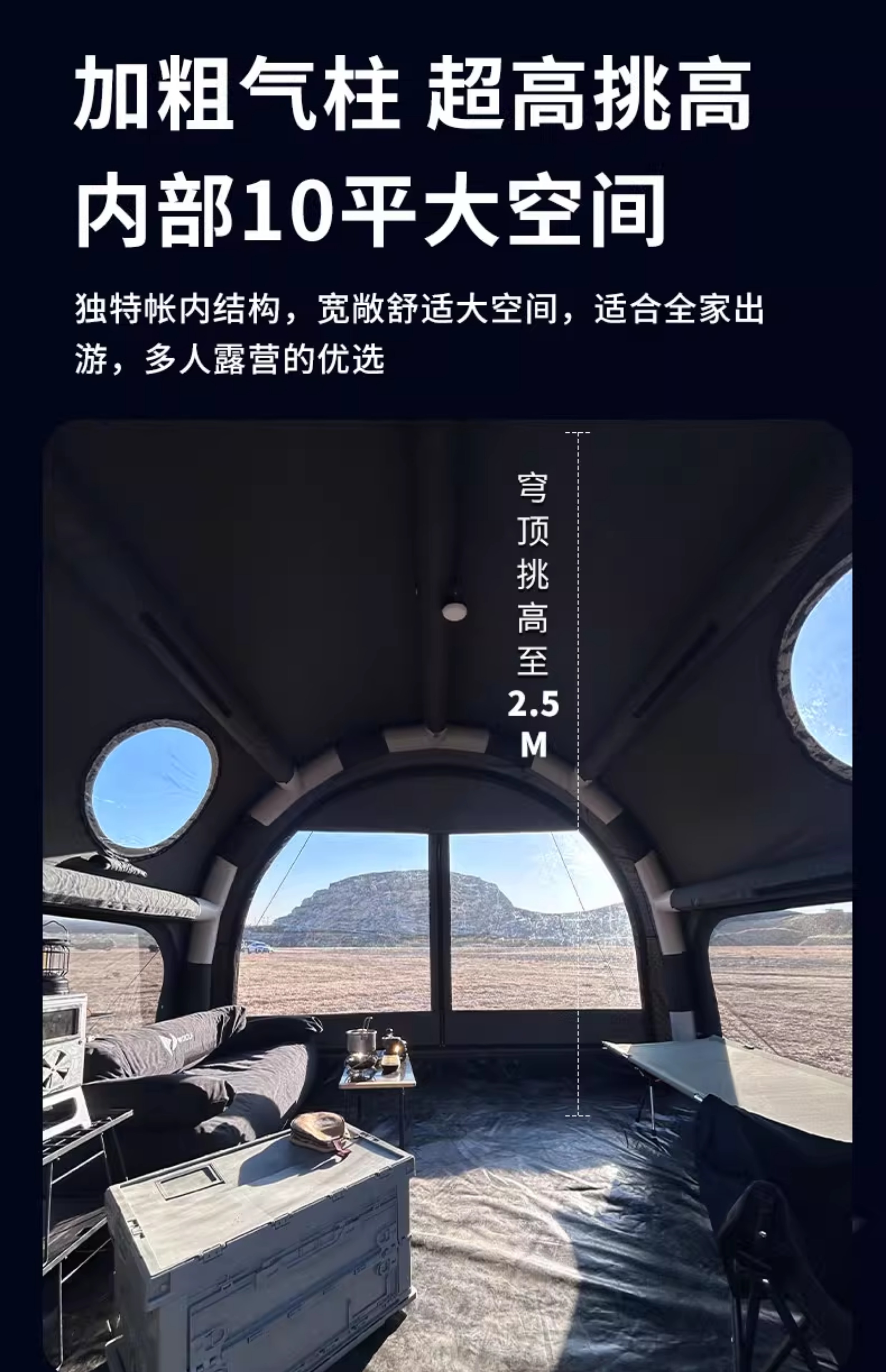 山约球形自动充气式帐篷户外野营过夜防暴雨2025新款露营全套装备