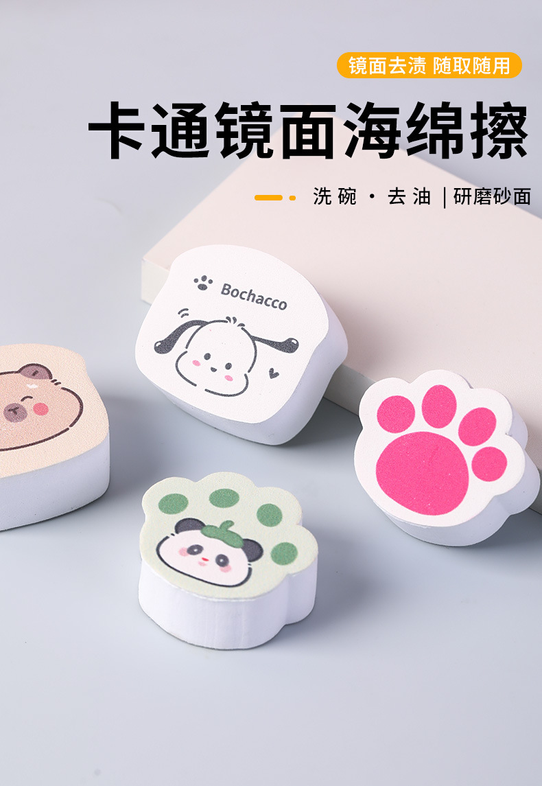 漫画の水垢取りミラー、浴室のガラスミラーを拭く、汚れや透かしを除去する、猫の爪の痕跡を残さず拭くためのクリーニングスポンジ