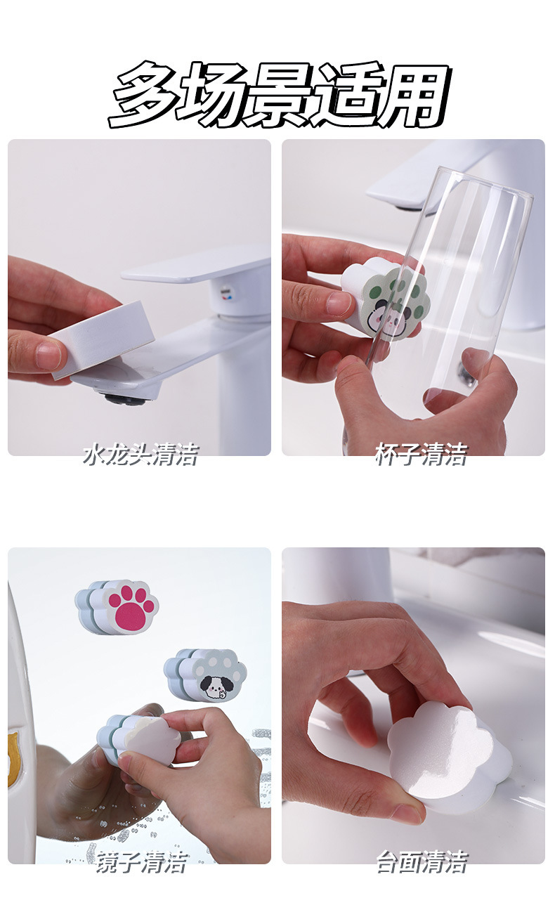 日本镜面擦去污力强清洁顽固水渍耐磨耐用猫爪海绵擦吸附镜面不掉
