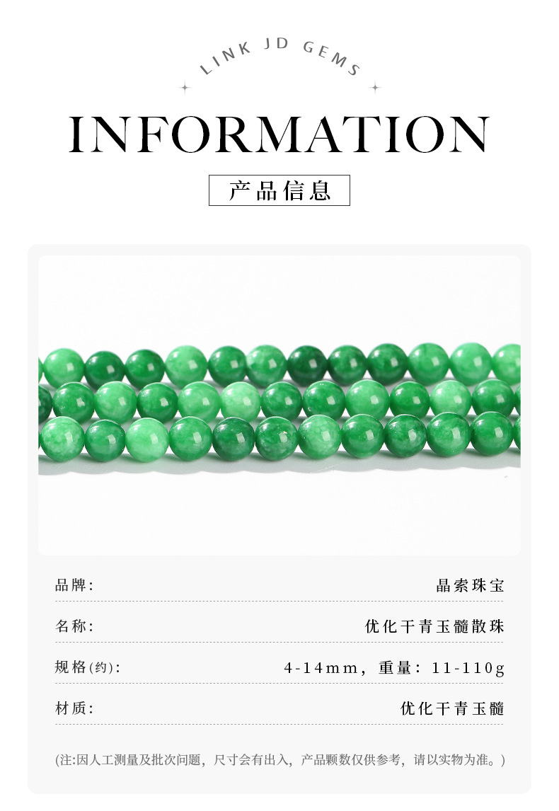 晶索天然A货油青翡翠散珠玉石圆珠单颗珠子配件diy饰品配件半成品