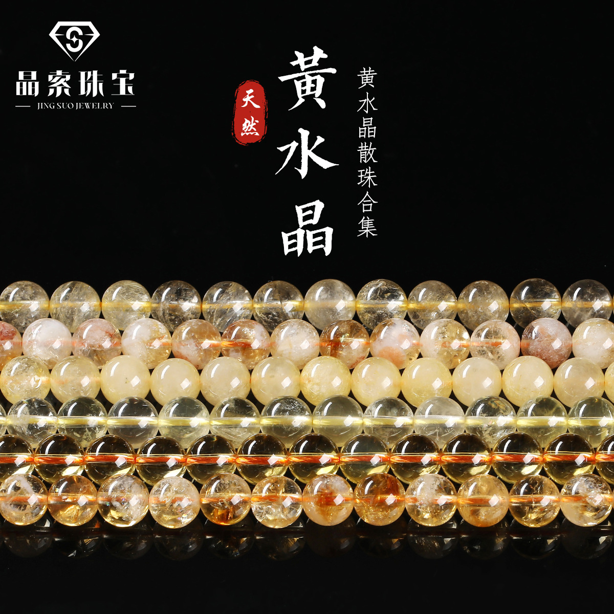 天然黄水晶散珠合集 diy饰品配件手串半成品水晶手链串珠散珠批发