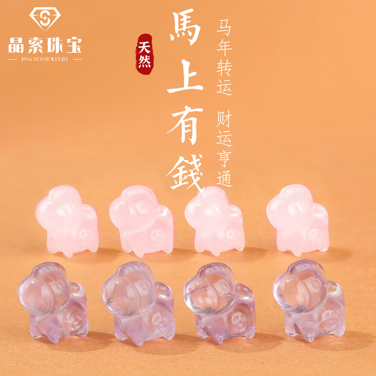 马年新款马上有钱天然石雕刻件水晶小马配件本命年红绳手链配饰