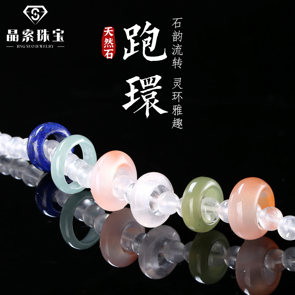 晶索天然石多材质跑环合集 手链diy饰品配件手串配饰玛瑙翡翠跑环