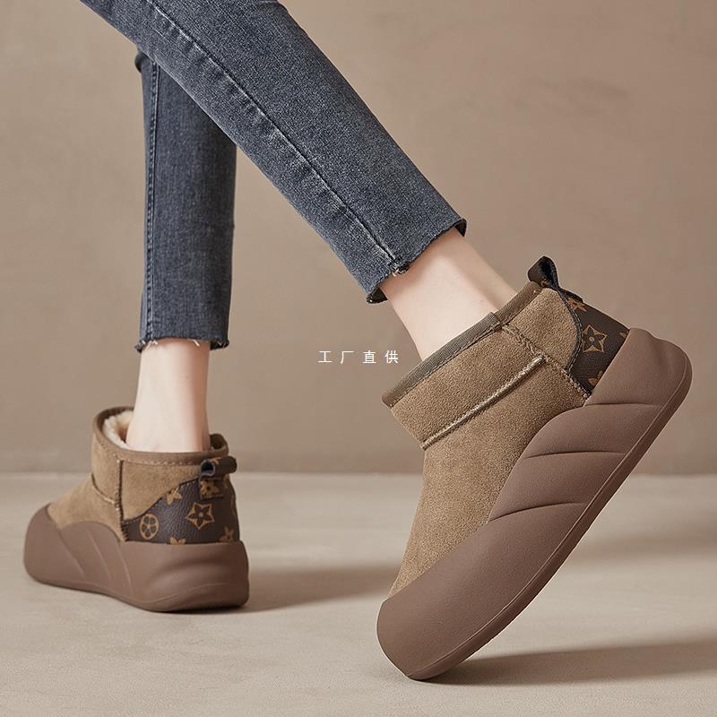 厚い底の雪の靴の女性の毛皮の一体の2024の新型の冬のベルベットの厚い柔らかい底の滑り止めの保温綿の靴の女性の金