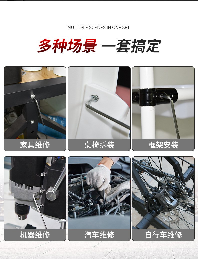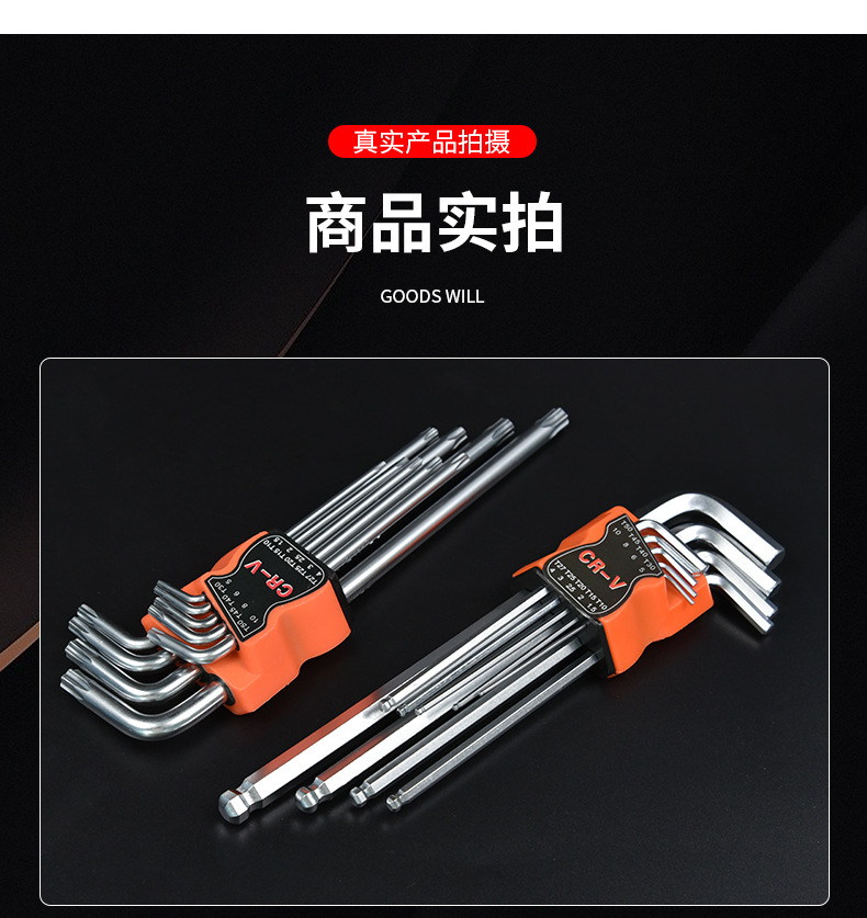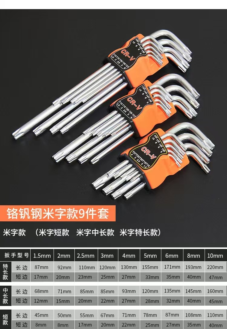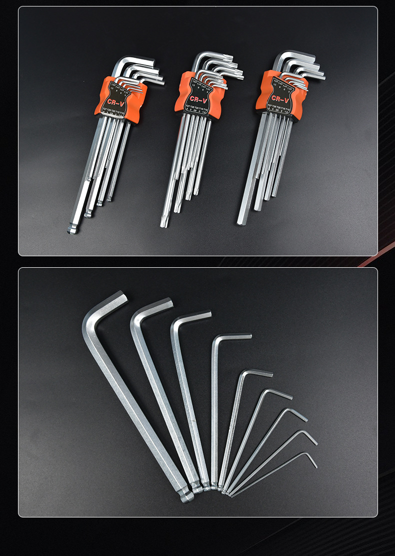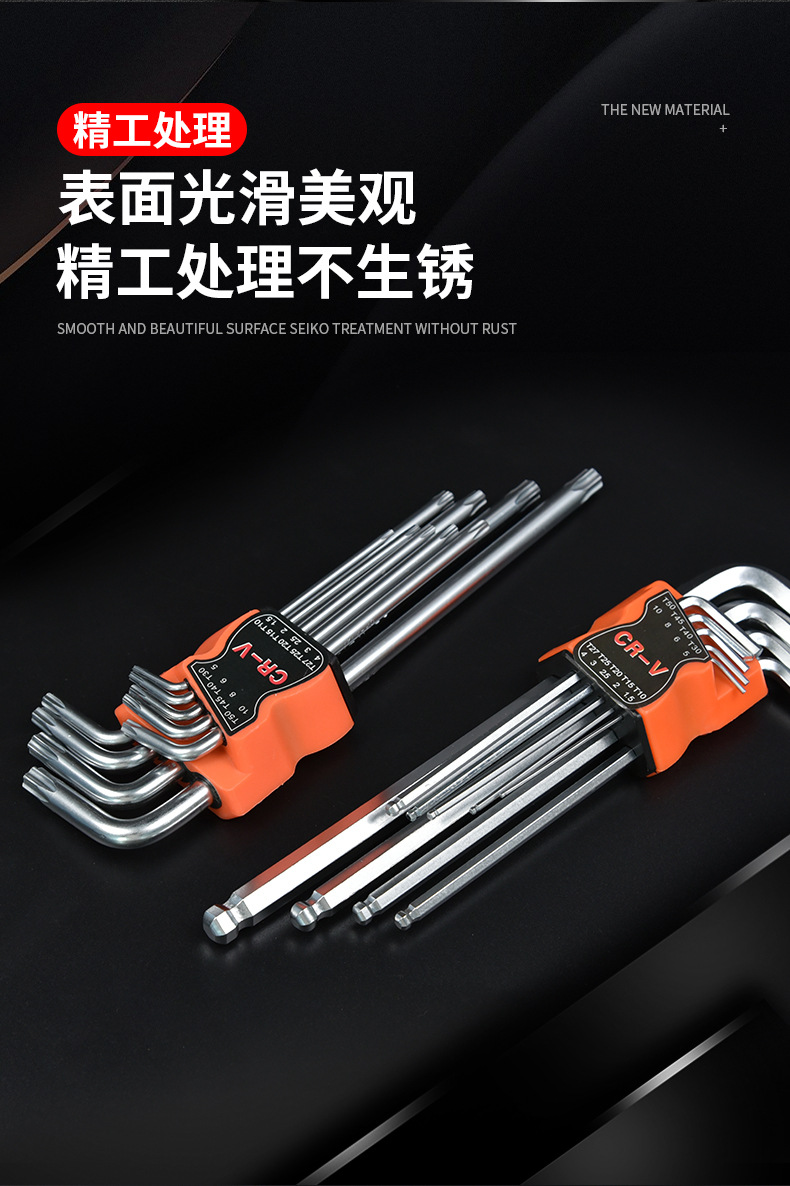 L型ボールヘッドミツ型梅花六角レンチ、延長六角形、マット仕上げ、小型メートル法レンチセット