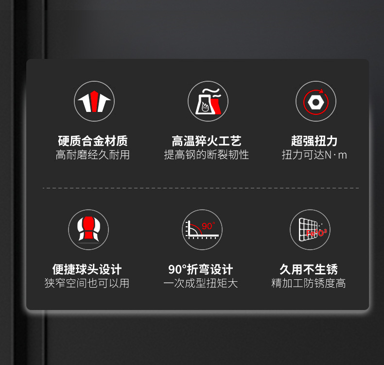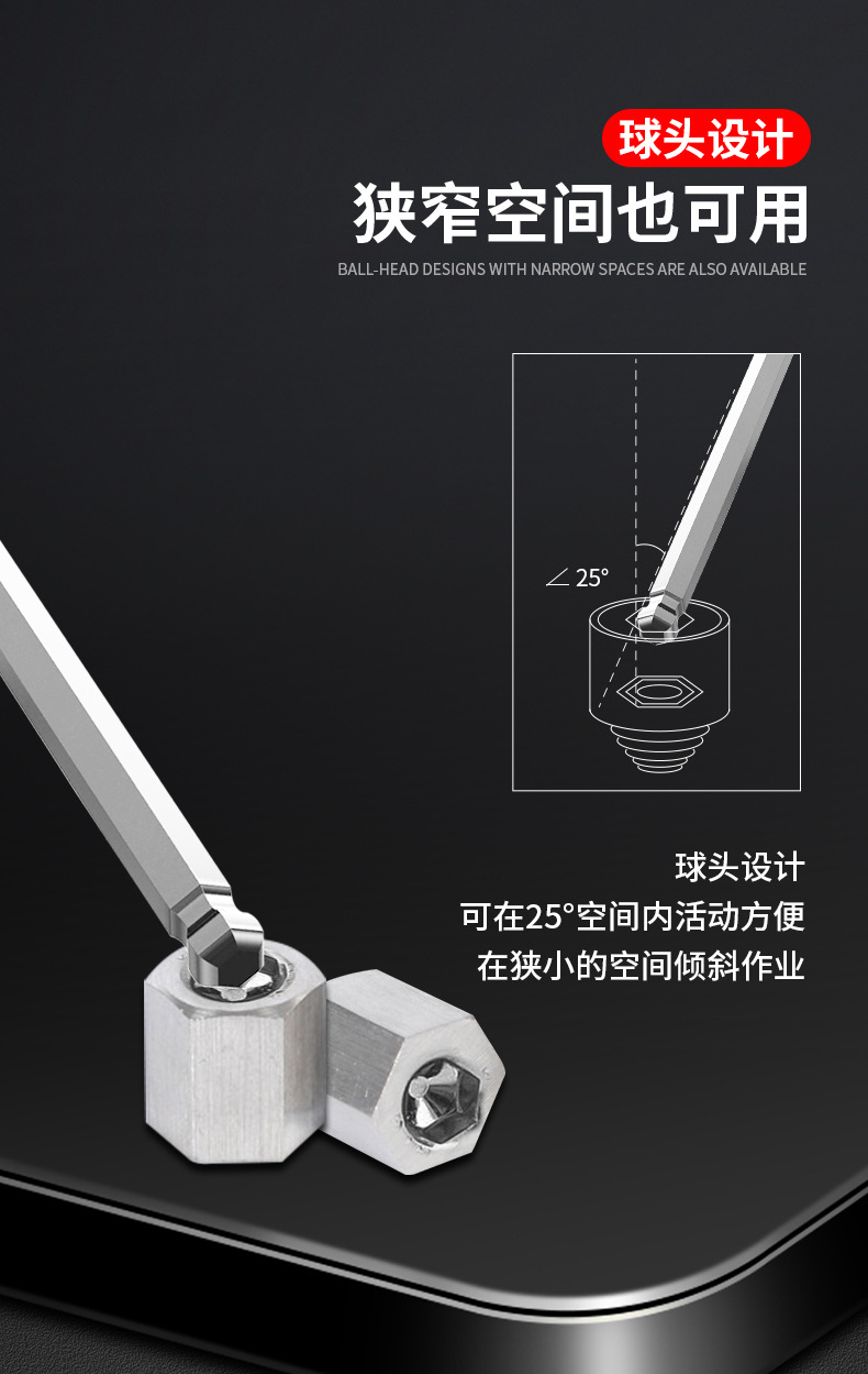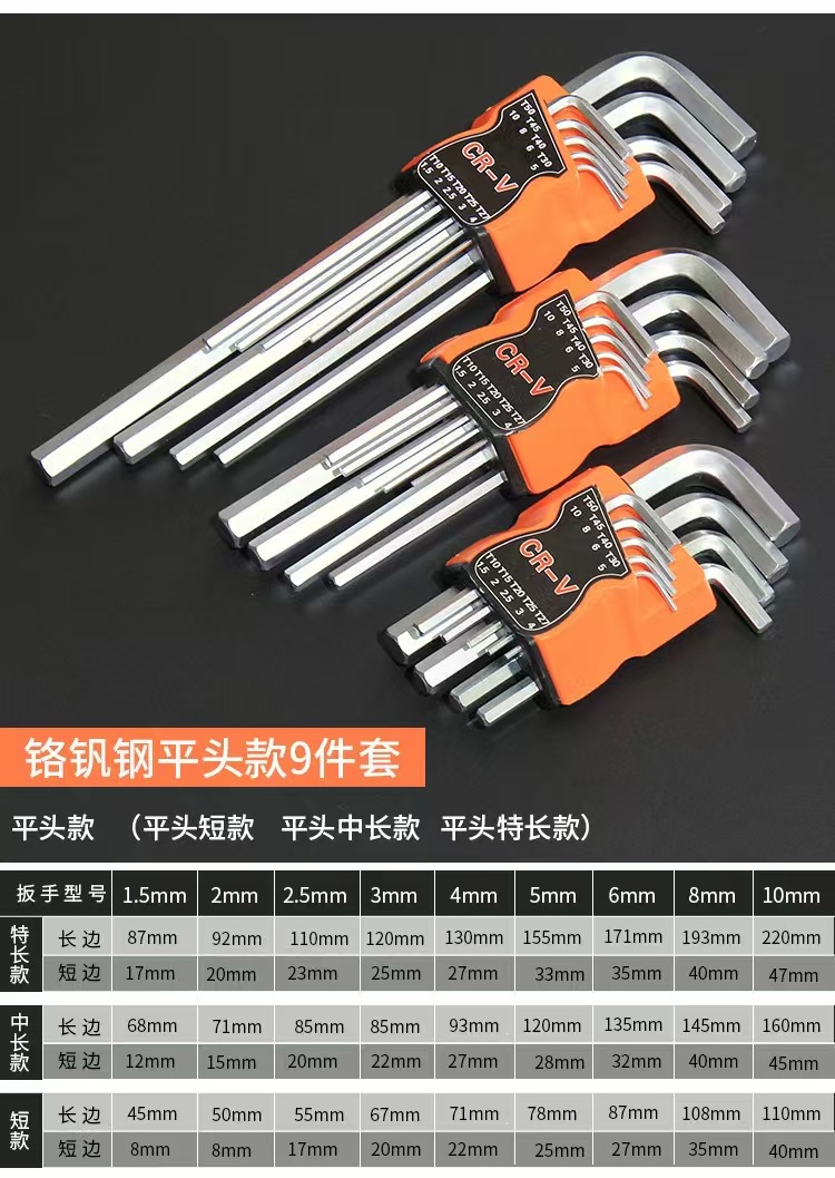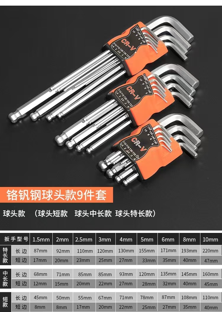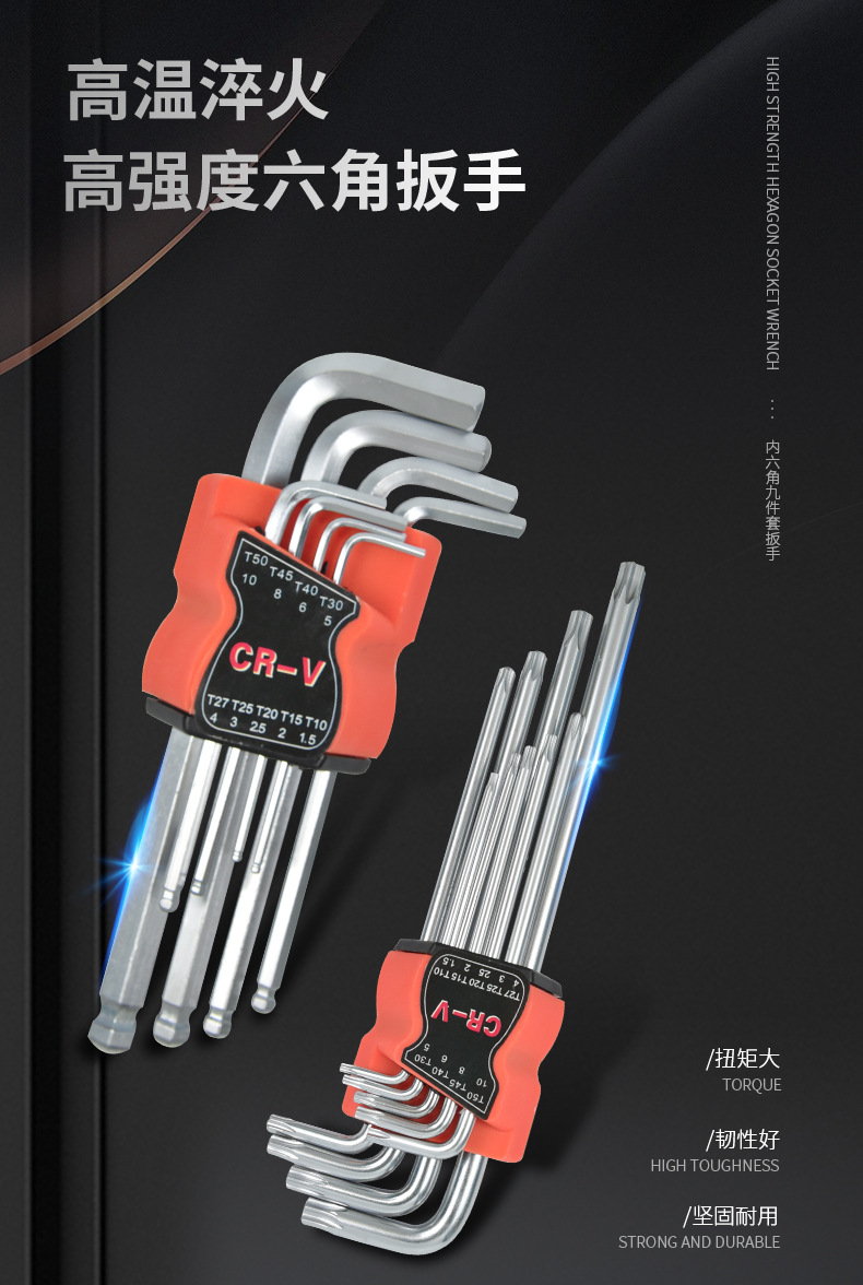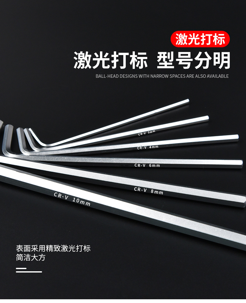 L型ボールヘッドミツ型梅花六角レンチ、延長六角形、マット仕上げ、小型メートル法レンチセット