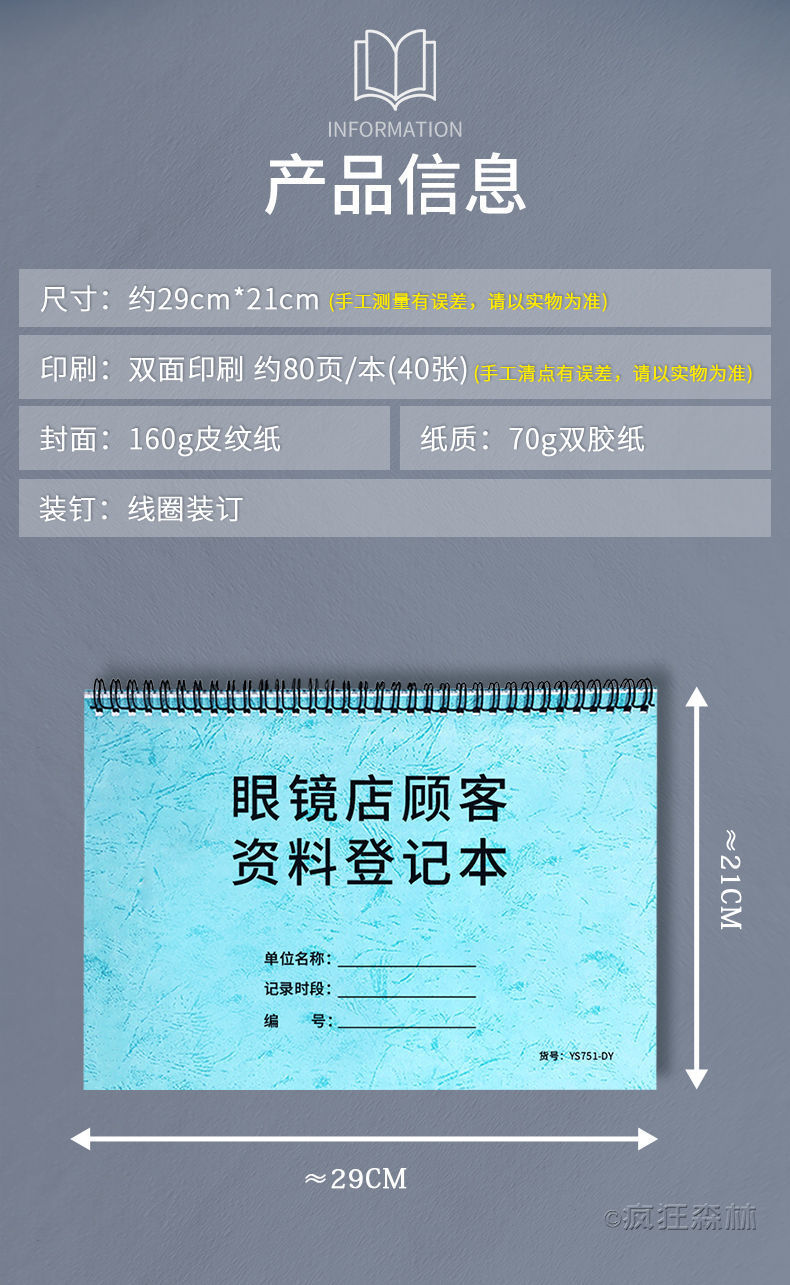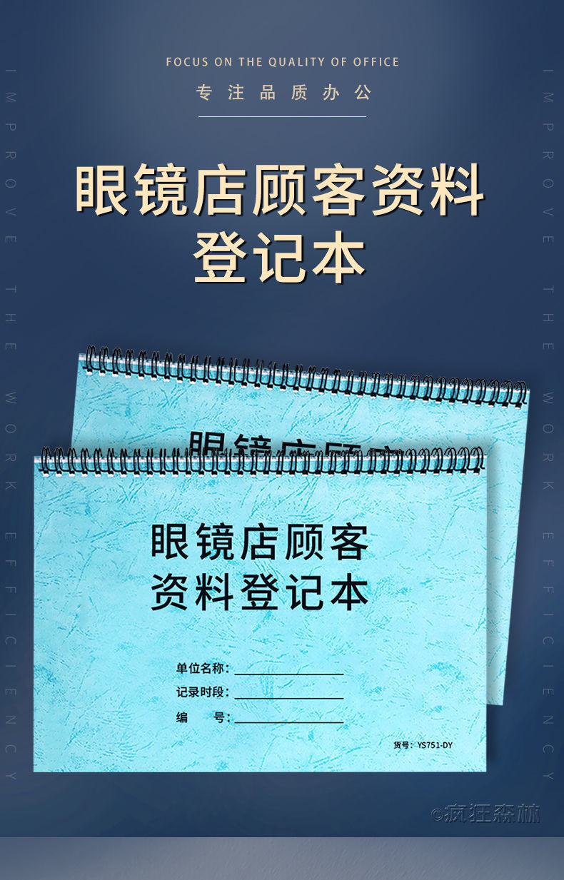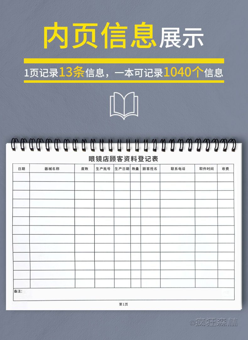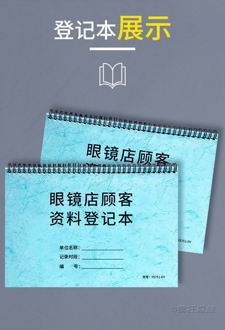 眼鏡店顧客情報登録簿、眼鏡スーパーマーケット注文記録簿、顧客情報簿、ビジネス