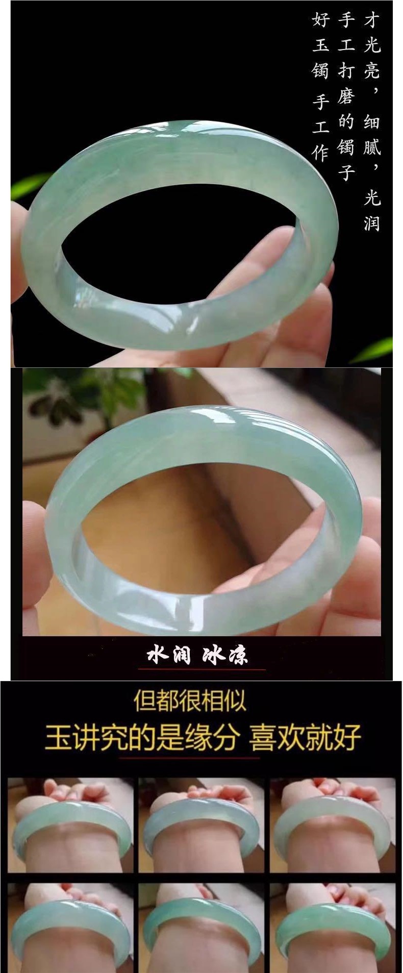 本物のミャンマー産ハイアイス本翡翠ブレスレット、女の子用、翡翠色、ママモデル、女性モデル、ライトグリーン、ライトグリーン、翡翠、ジチャン