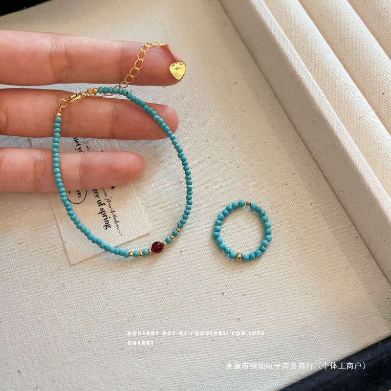 本物の辰砂ほくろ〜ターコイズサザンレッドビーズブレスレット女性の新しい中国風の転送ビーズブレスレットリング夏 Jican