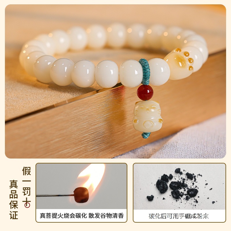 本物の炭火焼き猫の爪白翡翠菩提根ブレスレット学生指巻きソフトディスクおもちゃ仏ビーズ数珠菩提樹文吉山