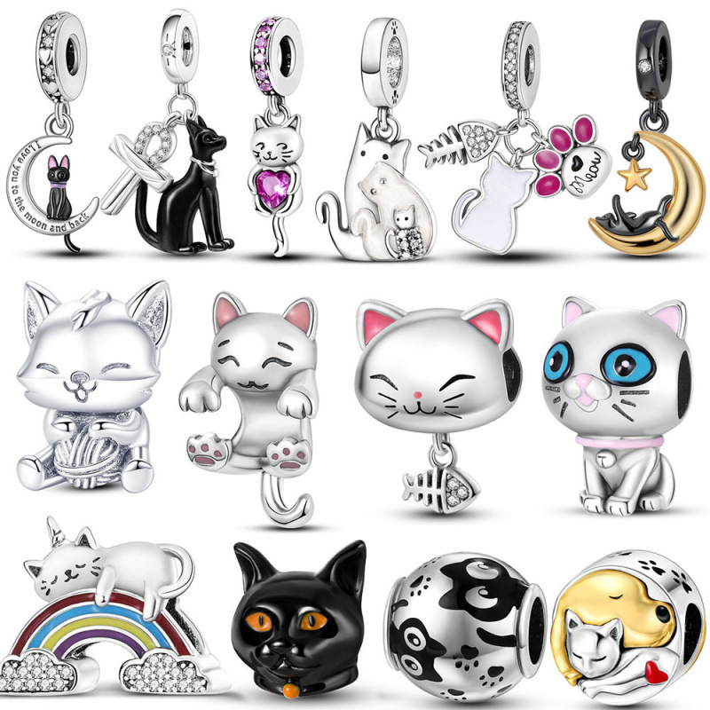 シルバーメッキのかわいい猫コレクション チャーム ビーズ 足跡ペン
